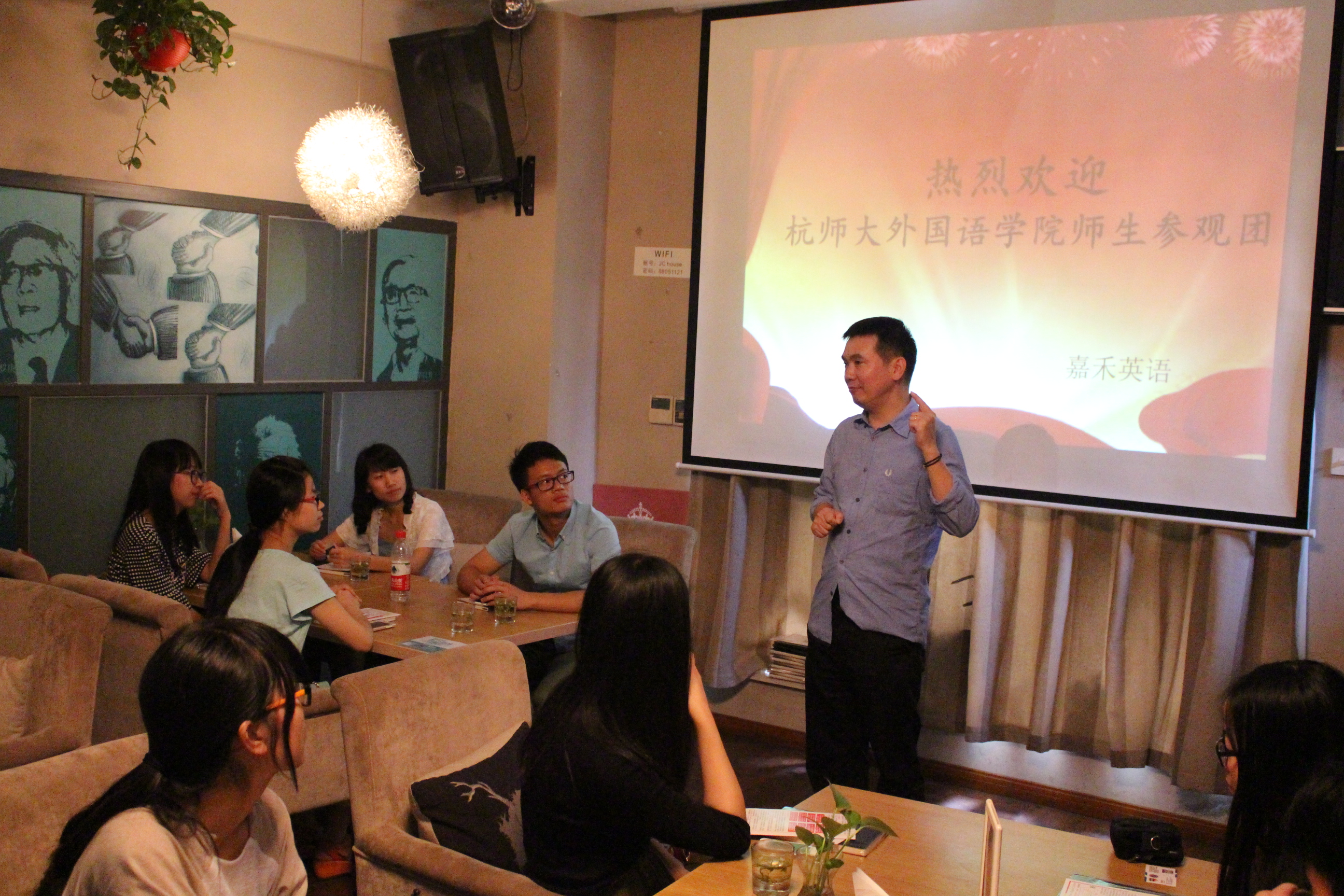 参观过程中,笪国庆校友与同学们进行了面对面的交流,讲述了自己的创业历程。该培训机构从一开始的几名员工到现在的40多名专职员工,发展成为以英语教育为特色,集中小学全科精品培训的学校,下设六个校区。笪总还介绍了学校的团队建设、师资力量等情况。面对同学提问,笪总也热心解答,仔细分析。最后,他结合自己的创业,为同学们就创业提出了一些建议。