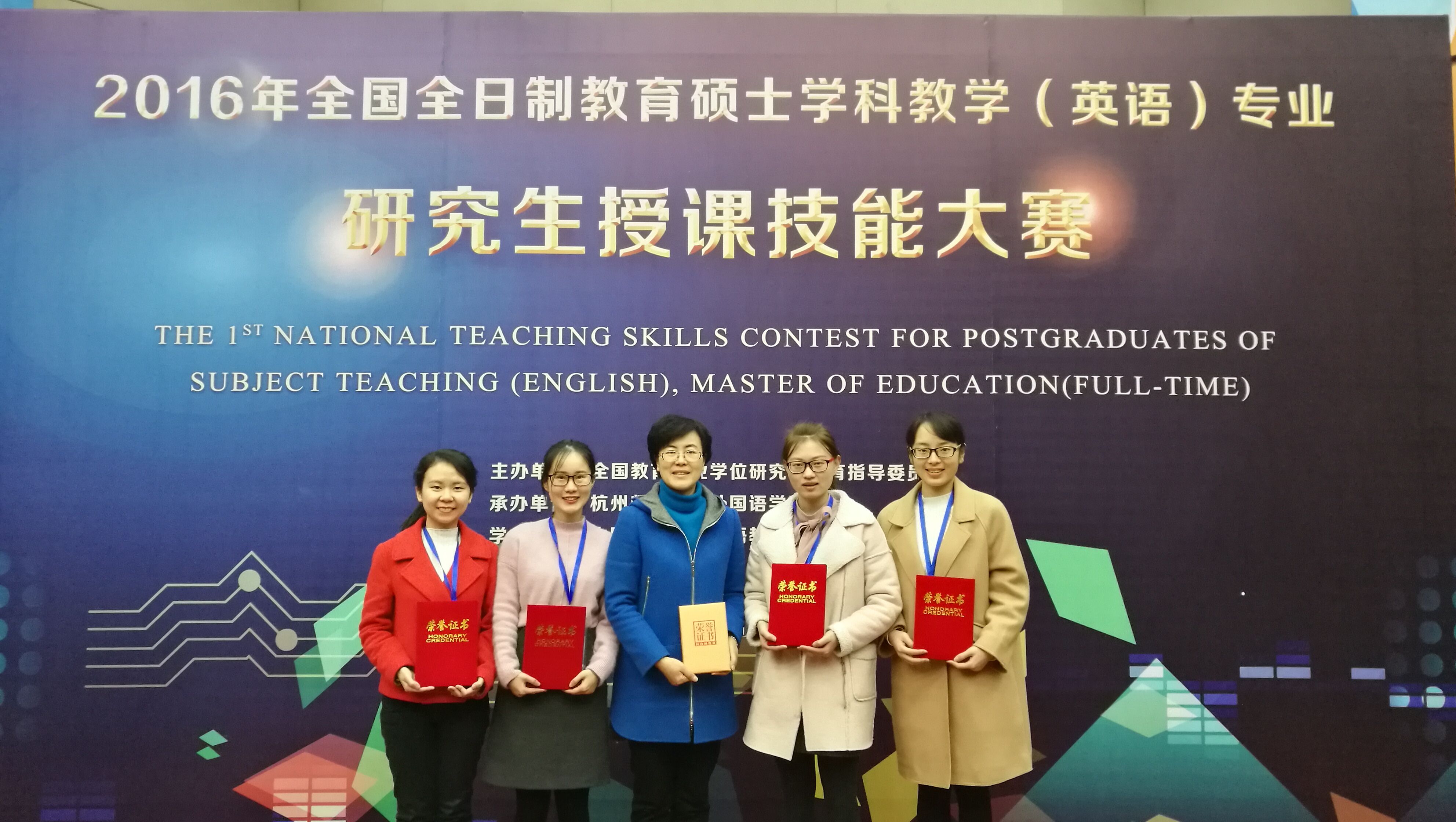 本次大赛的初赛阶段,67所参赛院校共选派了233篇学科教学(英语)专业研究生的教学设计,分为小学组、初中组和高中组进行评审,根据初赛专家评审委员会的评审结果,最终有来自全国30所院校的60名选手参加决赛。我校参赛选手表现优异,2015级学科教学(英语)专业的学生吴谊文、蔡雅娜分别获得初中组阅读和听说一等奖,周琦、陈灵桑分别获得初中组阅读和听说的二等奖,永乐视频 谢萍老师获得优秀指导教师奖。