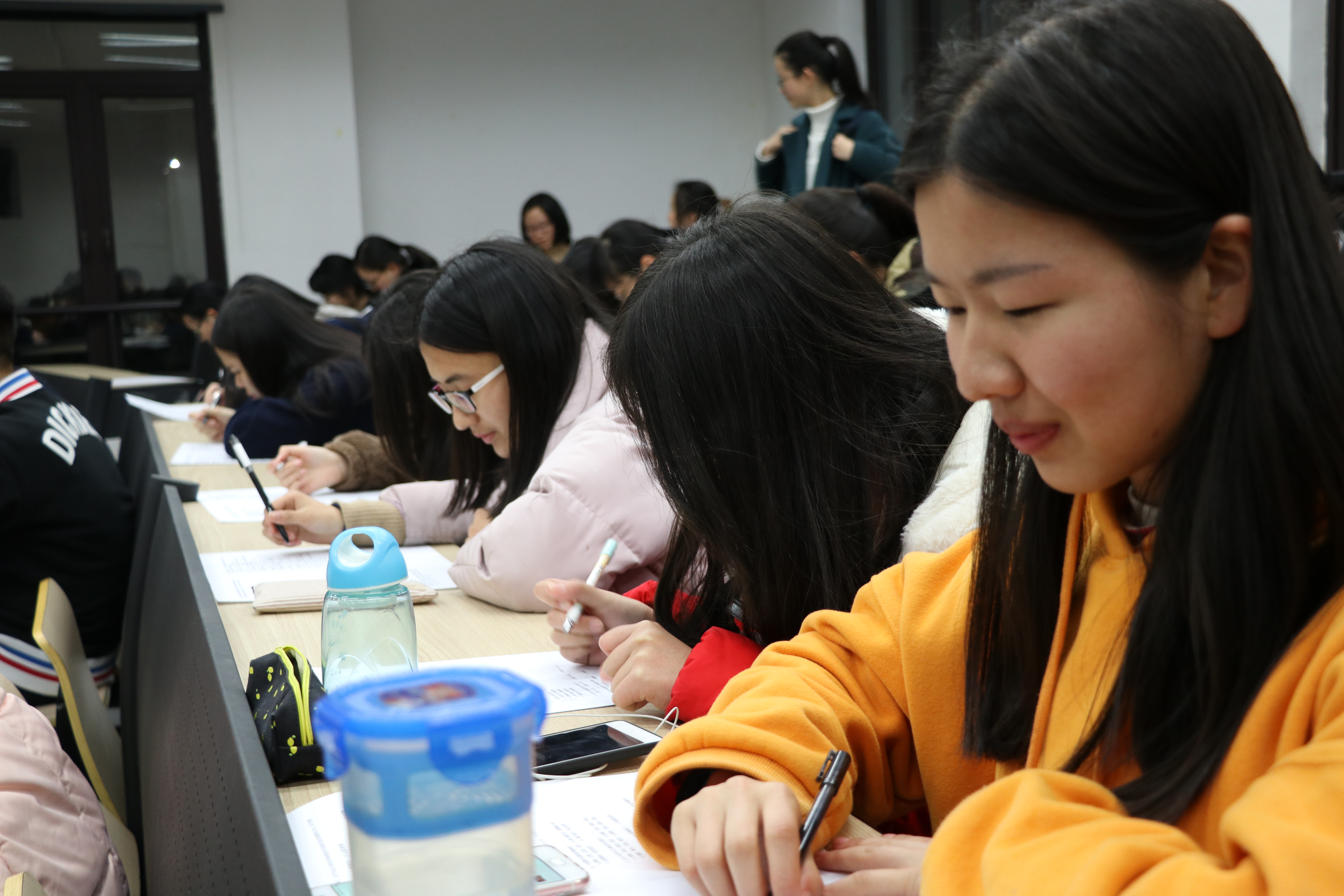 新闻竞赛以考试的方式进行,限时30分钟,要求不得使用手机等通讯工具,独立完成,可提前交卷。考试过程中,参赛者认真作答,一些答题较快的参赛者不出15分钟就交卷了,有的参赛者虽已做完了但是还在认真检查中,比赛过程中现场保持安静,进行顺利。