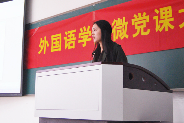 刚一上台时,选手们较为紧张,但随着PPT和讲课的推进,选手们逐渐从容和镇定了许多。选手们配合手势,声情并茂地向评委们传达了他们对党这一主题的理解与看法。其中,4号选手王琛表现尤为突出,伴随着铿锵有力的声音,她一手控制着鼠标切换PPT,一手比划着手势,再加上她亲切的微笑,立即吸引了在场所有人的注意力。除了表现力,王琛选手的所选内容也紧跟时代。她很好地诠释了习近平总书记提出的政治方针,呼吁所有人体悟党的精神,共筑中国梦,很好地契合了本次比赛的主题。