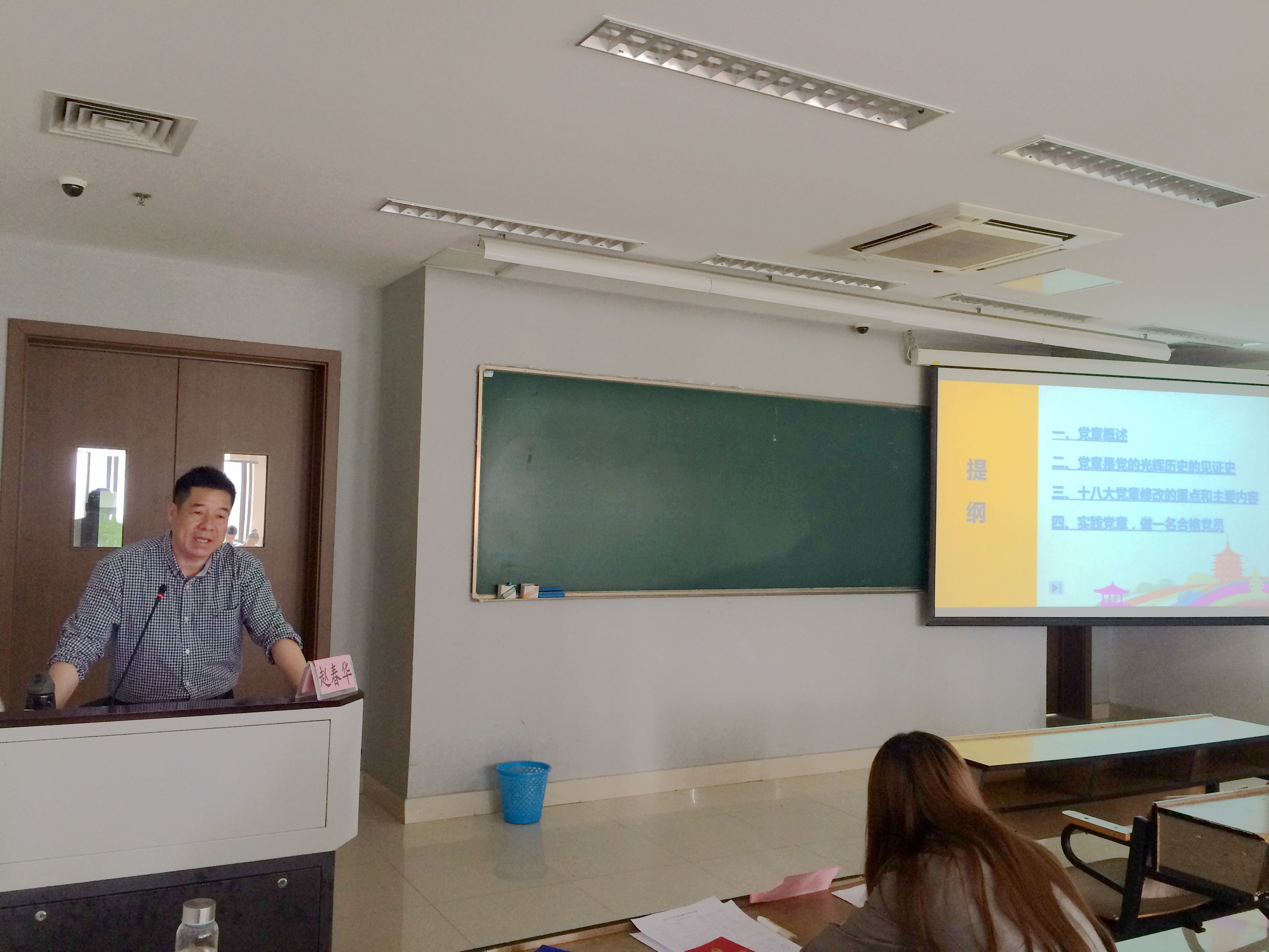 课上,赵老师对党章进行了概述,阐明党章的地位及作用,强调了党章的重要性,党章是党内部最基本和最高的政治行为规范,是党的政治态度和组织形式的集中体现。赵老师带领全体学员回顾了党章的发展历程。从党的二大到党的十八大,党章经历了一次次地修订和完善,赵老师向学员们详细介绍了每次修订党章的重点和主要内容,也阐述了我国不断加强和改进党的制度建设的过程。最后,赵老师以“实践党章,做一名合格的党员”激励学员正确认识党的性质,准确把握党章的科学内涵,不断增强党性修养。