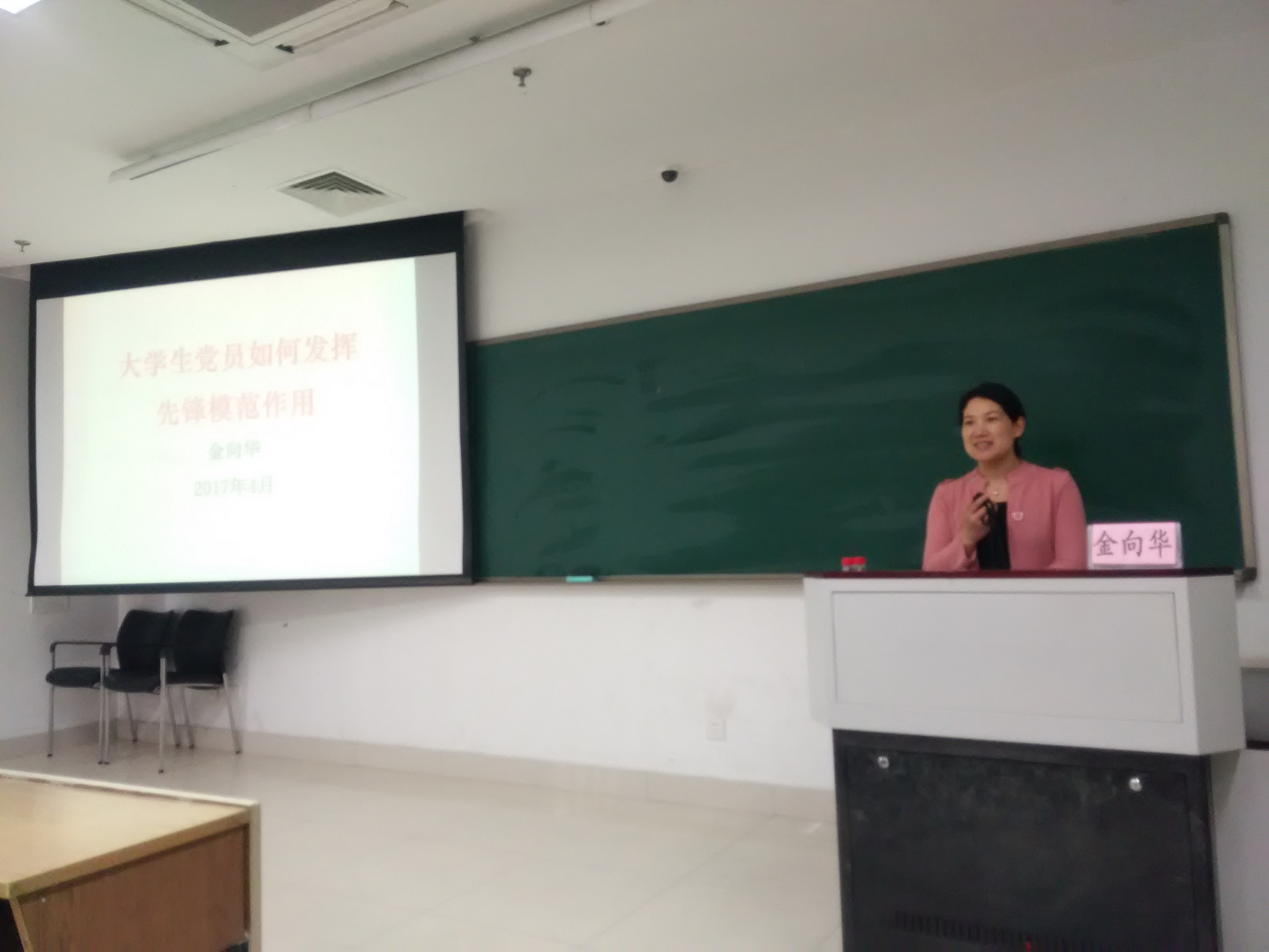 4月26日下午1点20分,永乐视频 分党校第五十七期发展对象培训班第二讲在恕园12号楼103教室开讲。永乐视频 党委副书记金向华老师为第五十七期发展对象培训班的全体学员讲授了“大学生党员如何发挥先锋模范作用”专题党课。