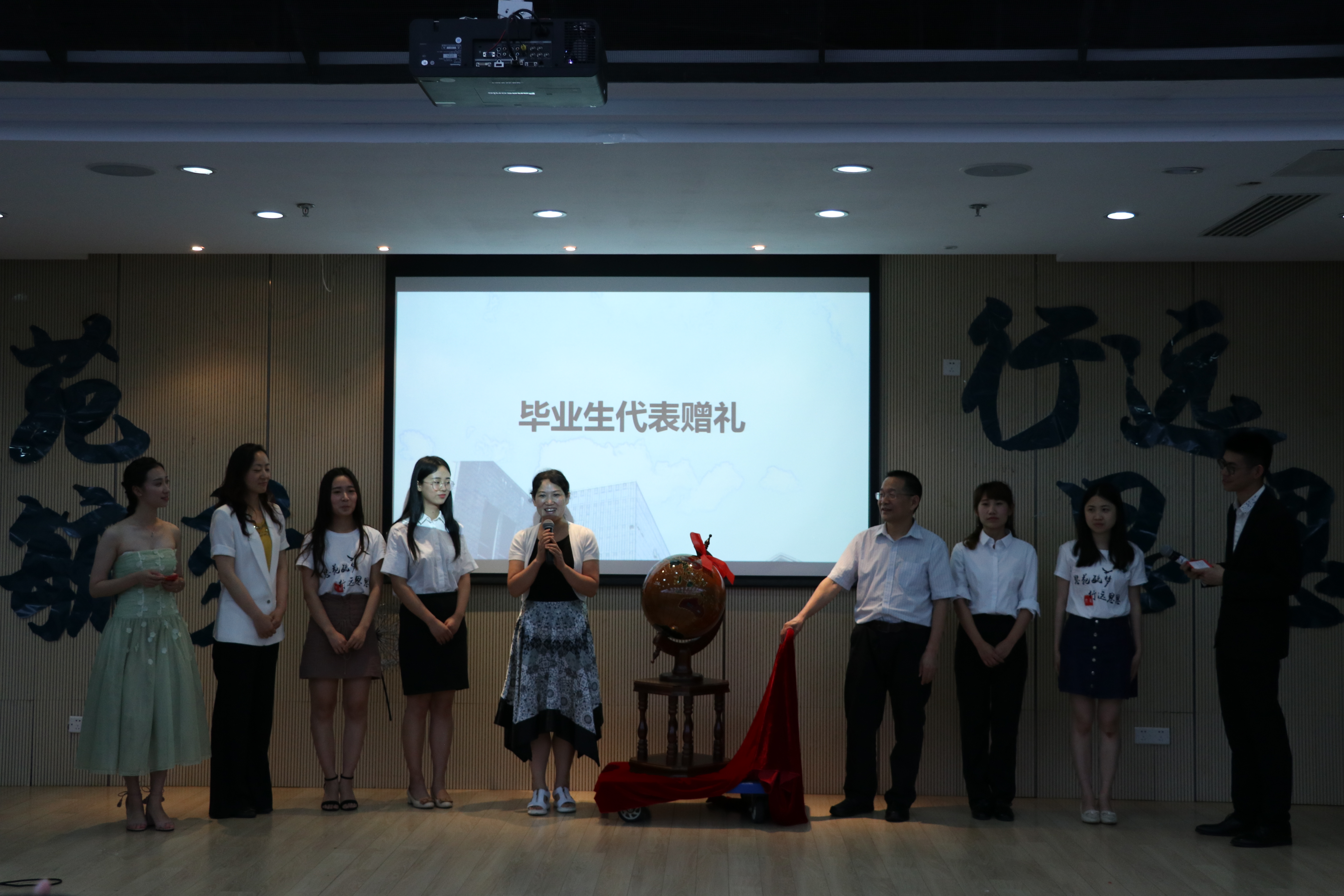 典礼上,还进行了校友联络员聘任、优秀毕业生颁奖以及毕业生代表赠礼等环节。毕业生代表将地球仪推出赠与学院,寓意着毕业生无论今后在地球的哪一个角落,都不会忘记杭师大外国语是永远的港湾。