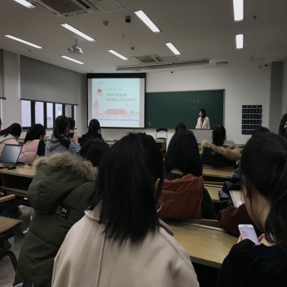 2017年11月22日,永乐视频 学生党员宣讲团成员郑淑瑶在英语173、英语174班展开宣讲会。
