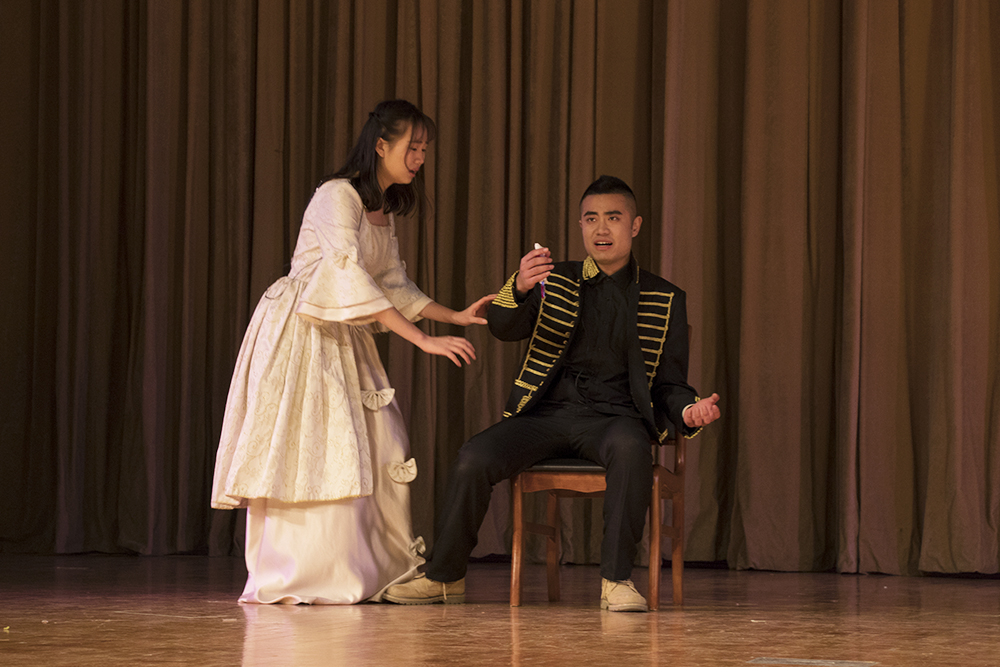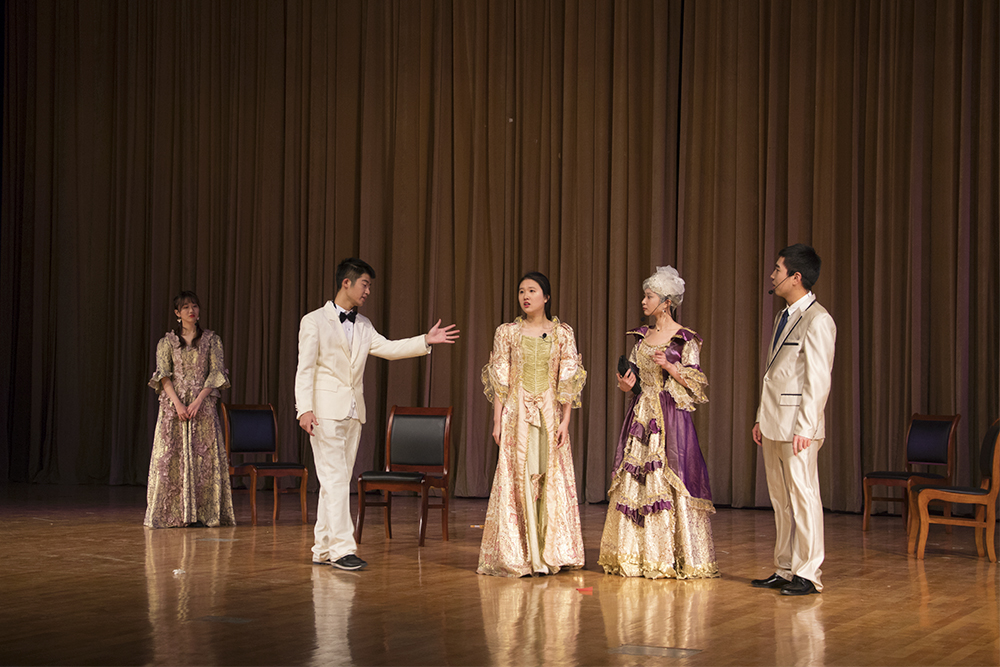 颁奖仪式结束后,春柳外语话剧之夜演出正式开始,本次上演的是莎士比亚的《麦克白》和王尔德的《不可儿戏》。两场戏剧演绎得十分到位,演员的悲喜交加令观众们如痴如醉。流利标准的语音、惟妙惟肖的演技、装饰细致的服装以及精巧道具的运用都表现出了同学们对剧本成熟的理解和对戏剧表演的热爱。演出结束后,陈光乐老师总结道,演话剧能够很好地促进语言学习,综合所有能力并将语言内化,在感谢春柳话剧社的辛勤付出时也希望有更多的同学积极加入进来,提升自我,一展风采。