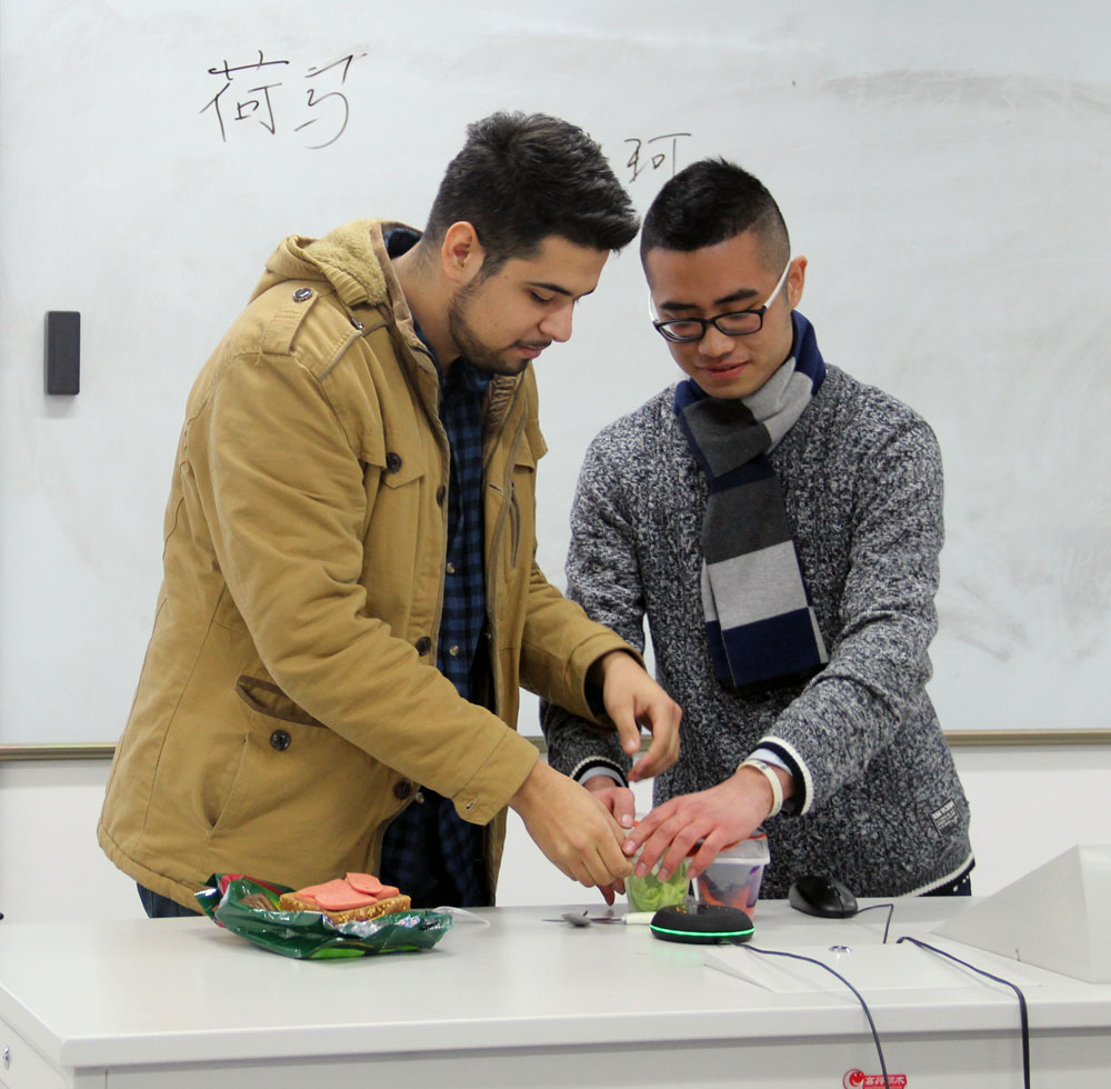 本次课堂的主题是中外美食及餐桌文化,授课的两位老师分别是外语村西点部部长林达珂同学和来自墨西哥的外国留学生荷马同学。两人以英语问候有多种不同的方式开篇,分别做了富有特色的自我介绍,课堂一下子活跃起来。荷马同学对墨西哥文化风俗的介绍更是令人大开眼界.接着,两人为新疆同学全面地介绍了中西各地美食,并对美食在英文表达中可能出现的错误进行了耐心入微的辨析。扎实的英语功底、充分的材料准备以及热情的讲课方式令两位老师上课时游刃有余,课堂生动活泼,亮点十足。大屏幕中新疆同学的表现同样十分积极,透过屏幕两位老师与阿克苏中学的同学们亲切互动,构建起了一道互通友谊、相互学习的平台桥梁,拉进了双方的距离。在介绍餐桌礼仪时,两位老师还亲自给大家表演正确和错误的示范,课堂上充满了欢声笑语。寓教于乐,新疆同学跟随两位老师学做三明治,最后进行小游戏,都让这节课更加精彩纷呈。