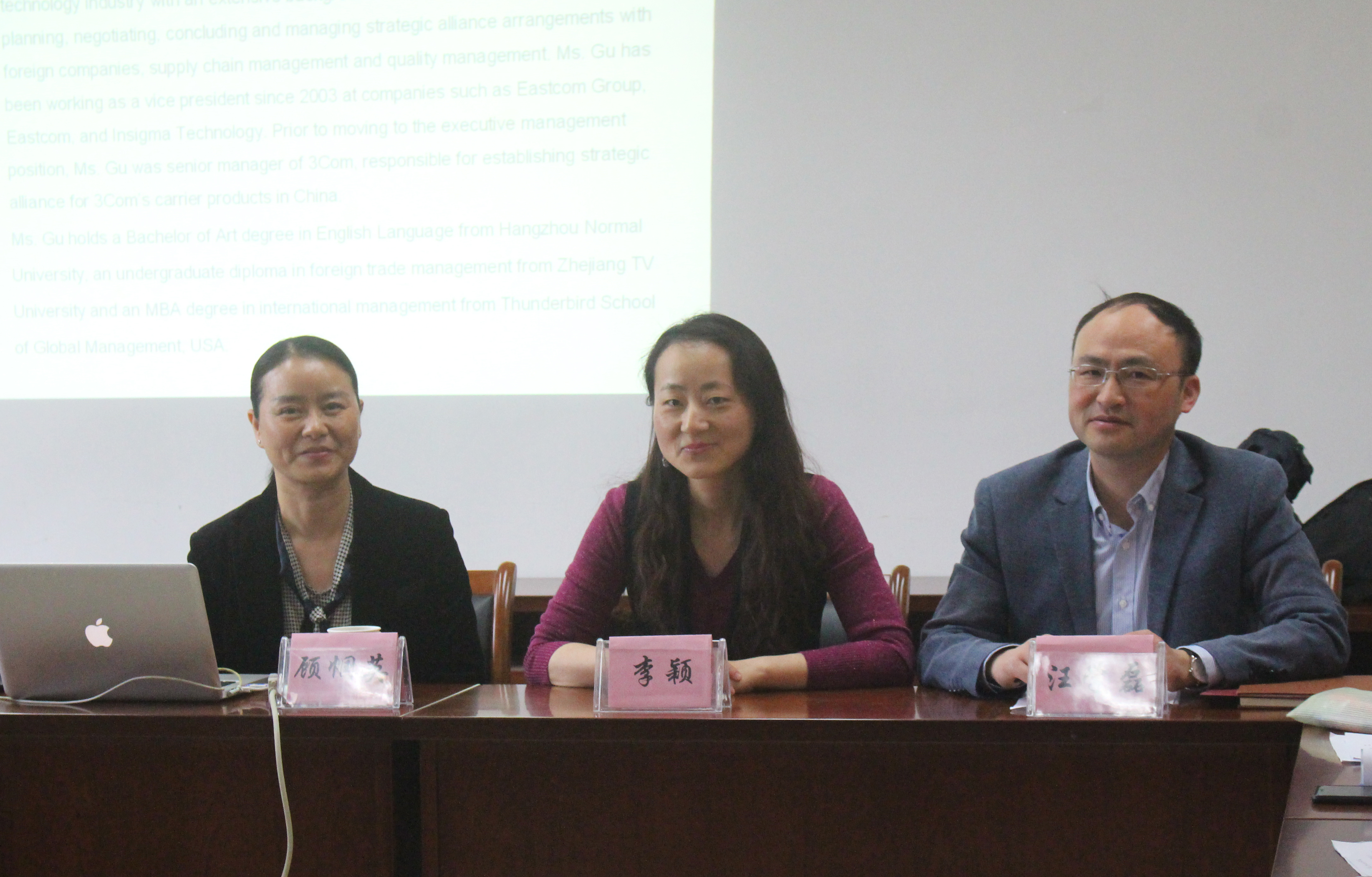 讲座伊始,顾女士以她与马云先生的故事讲起,表达了对马云的钦佩之情,并结合自己的亲身经历,阐述了成为一名优秀商英的必备技能。要想成为一名优秀的商务人士,她认为不仅要具备专业上的硬实力,更应具备较强的人际交往、组织沟通和团队协作等软实力。顾女士分享了自己在处理国际业务中的成长历程,让她感触最深的一点是“一个人即使再优秀也得不断学习、充实自我。”顾女士以马云先生不久前提出的时代企业家要有“全局观、未来观、全球观”的新三观为寄语,勉励学弟学妹们珍惜大学时光,不断拓宽全球视野,培养家国情怀,努力成为学识扎实、心怀世界的新时代大学生。