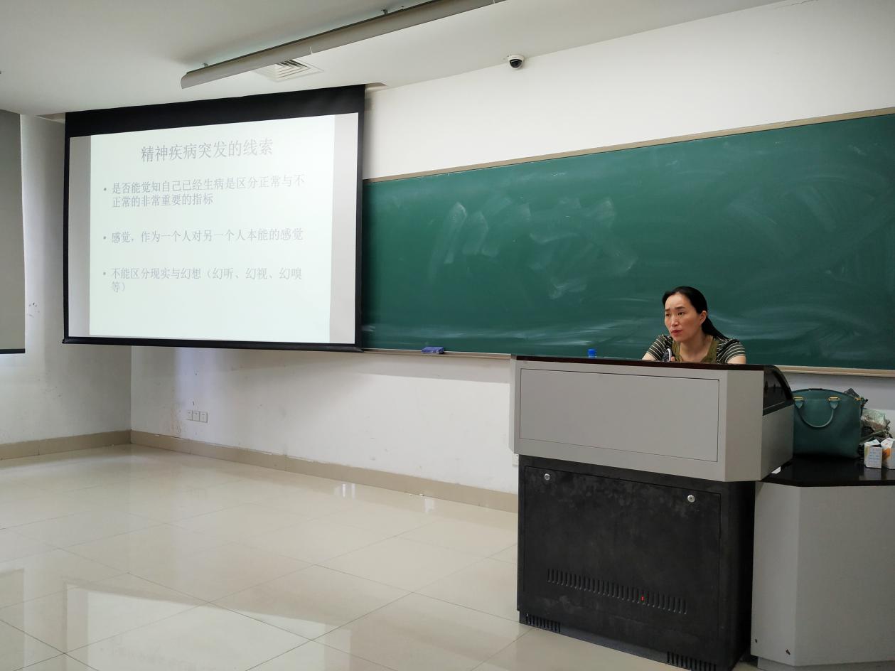 本次讲座的主题为“大学生常见的心理问题及应对策略”。李梅老师指出,大学生常见的心理问题有精神疾病,人格障碍、重度抑郁症和偷窃癖三种。对于这三种心理问题,李老师重点介绍了它们的症状和线索,教给学生干部如何辨别。在了解了大学生心理问题的表现之后,李老师重点介绍了应对策略。如果发现班里的学生有心理问题,一方面要建议该同学放下戒备心,预约学校的心理咨询,鼓励学生寻求积极的心理治疗;另一方面,如果该学生的问题比较严重,需要及时上报辅导员老师,以免发生难以挽回的后果。