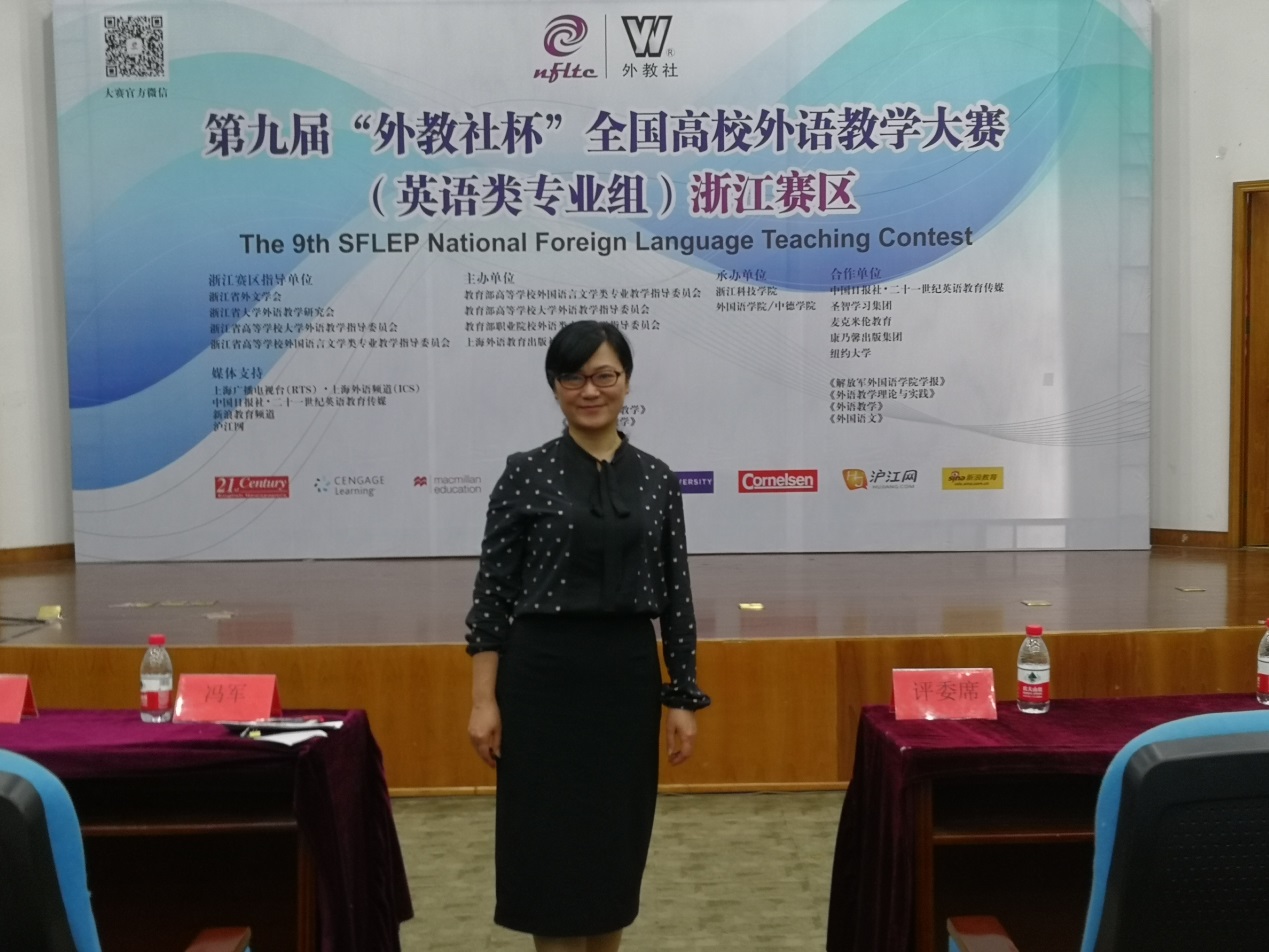 第九届“外教社杯”全国高校外语教学大赛英语专业组大赛(浙江赛区)于2018年6月9-10日在浙江科技学院进行,大赛由教育部高等学校外国语言文学类专业教学指导委员会、教育部高等学校大学外语教学指导委员会、教育部职业院校外语类专业教学指导委员会和上海外语教育出版社联合主办,旨在提升我国外语教学质量和外语专业教学水平,推动高校外语师资队伍建设,促进教师发展,深化教学改革。