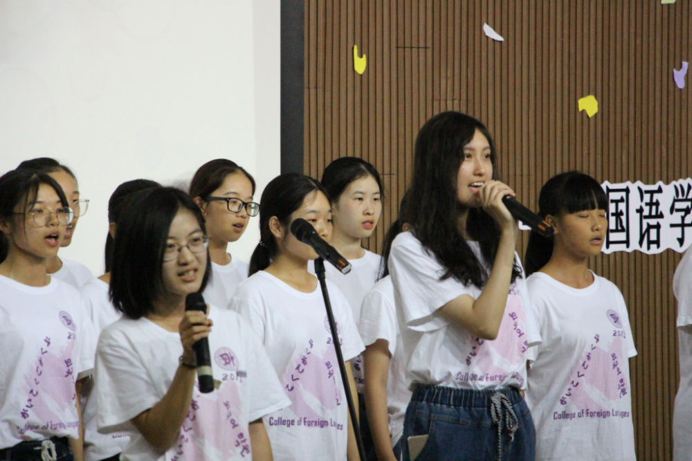 晚会下半场同样看点十足。1807班带来的节目《和我在杭师走一走》把诗歌朗诵、合唱、尤克里里三种形式巧妙地融合在一起,却又不失违和感。1809班同学为大家带来了名为《曳舞青春》的歌舞串烧,劲歌热舞令人欲罢不能。1811班同学翻唱了金曲《凉凉》,保留原曲凄凉风格的同时也不失自己的味道。1808班同学则更加别出心裁地用了杯子舞,令众人大开眼界。