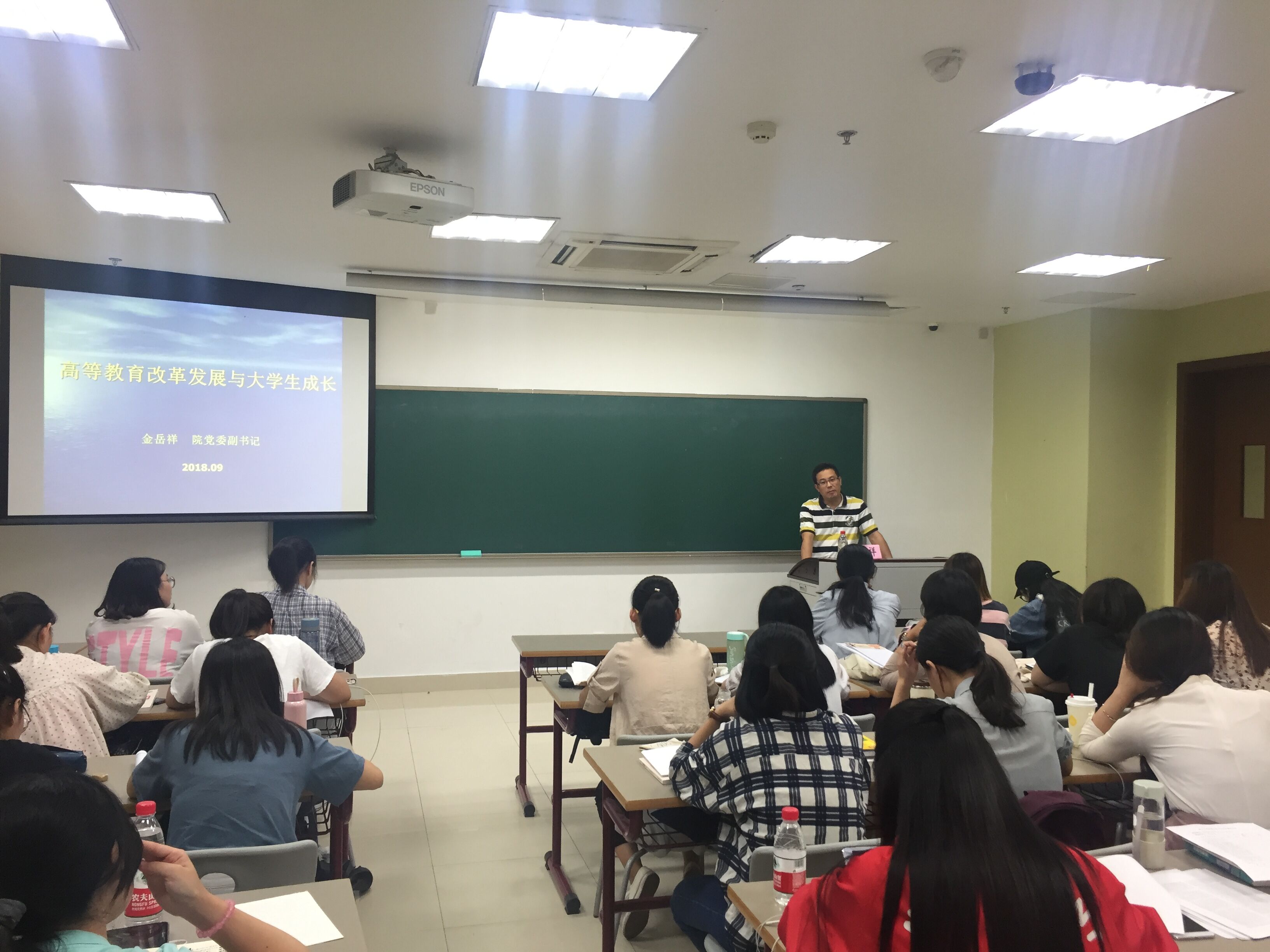 9月28日晚5点半,永乐视频 分党校第六十期发展对象培训班第四讲在恕园19号楼202举行。本次党课的主题是《高等教育改革发展与大学生成长》,永乐视频 党委副书记金岳祥老师应邀为全体学员授课。