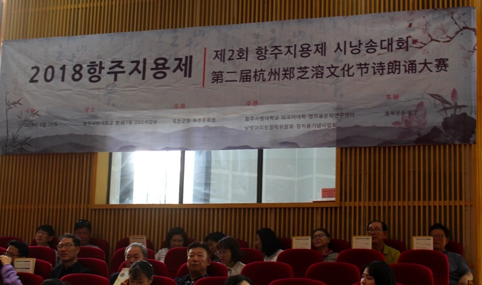 9月28日下午,郑芝溶文化节之第二届郑芝溶·尹东柱学术研讨会在我校行政楼417会议室召开。本次研讨会以郑芝溶·尹东柱的作品研究为主题,从多个角度对他们的作品进行对比与探讨。我校党委副书记张志军,副院长汪学磊,朝鲜语系主任俞春喜,韩国沃川郡守金在中,文学院院长金承龙以及来自浙江省和韩国高校朝鲜语专业负责人出席了本次研讨会。