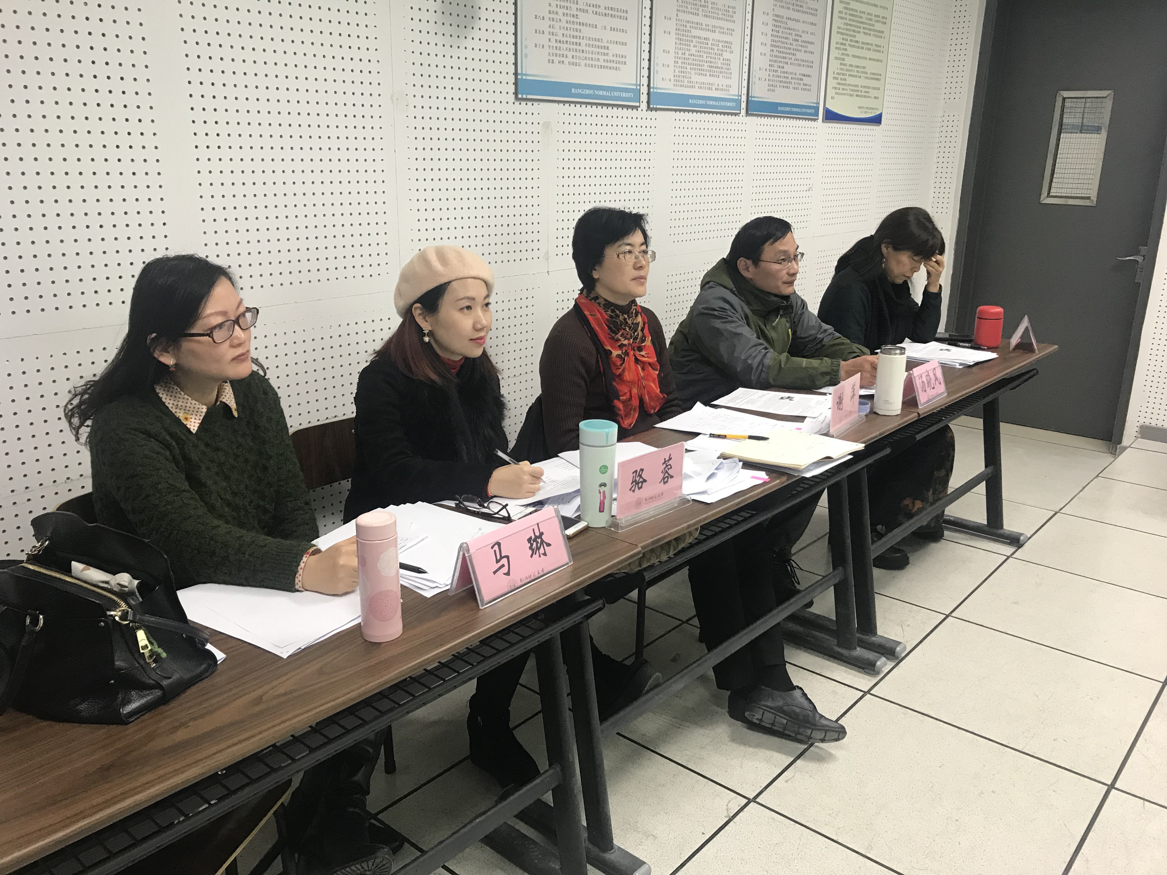 测评试场安排在微格教室进行,测试流程严格按照教学技能竞赛的要求进行,准备工作要求在3小时内完成教学设计、说课稿以及课件,测试过程包含3分钟说课,10分钟摸拟上课以及3分钟的即兴演讲等三个环节。测评小组对研究生的教学设计、摸拟上课、板书、多媒体制作及语音面貌进行打分。测试结束后,李威峰、孔慧敏和周蕙三位特级教师对研究生的教师技能进行了专业的点评,对同学们在实习中所取得的进步表示了肯定,同时,也对大家的语音面貌、教师用语,课堂互动,教学设计等环节,提出中肯定意见,使学生们获益良多。