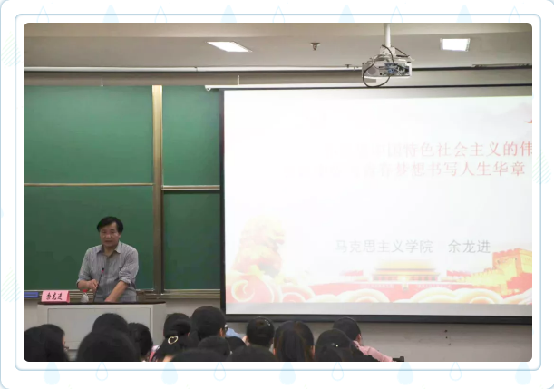 最后,余老师勉励外院学子,应以习近平新时代中国特色社会主义思想武装头脑、指导实践,将人生之奋斗汇入时代之洪流。同时,希望大家牢牢谨记习近平总书记重要讲话精神,以青春之我,创建青春之国家,青春之民族,青春之人类。