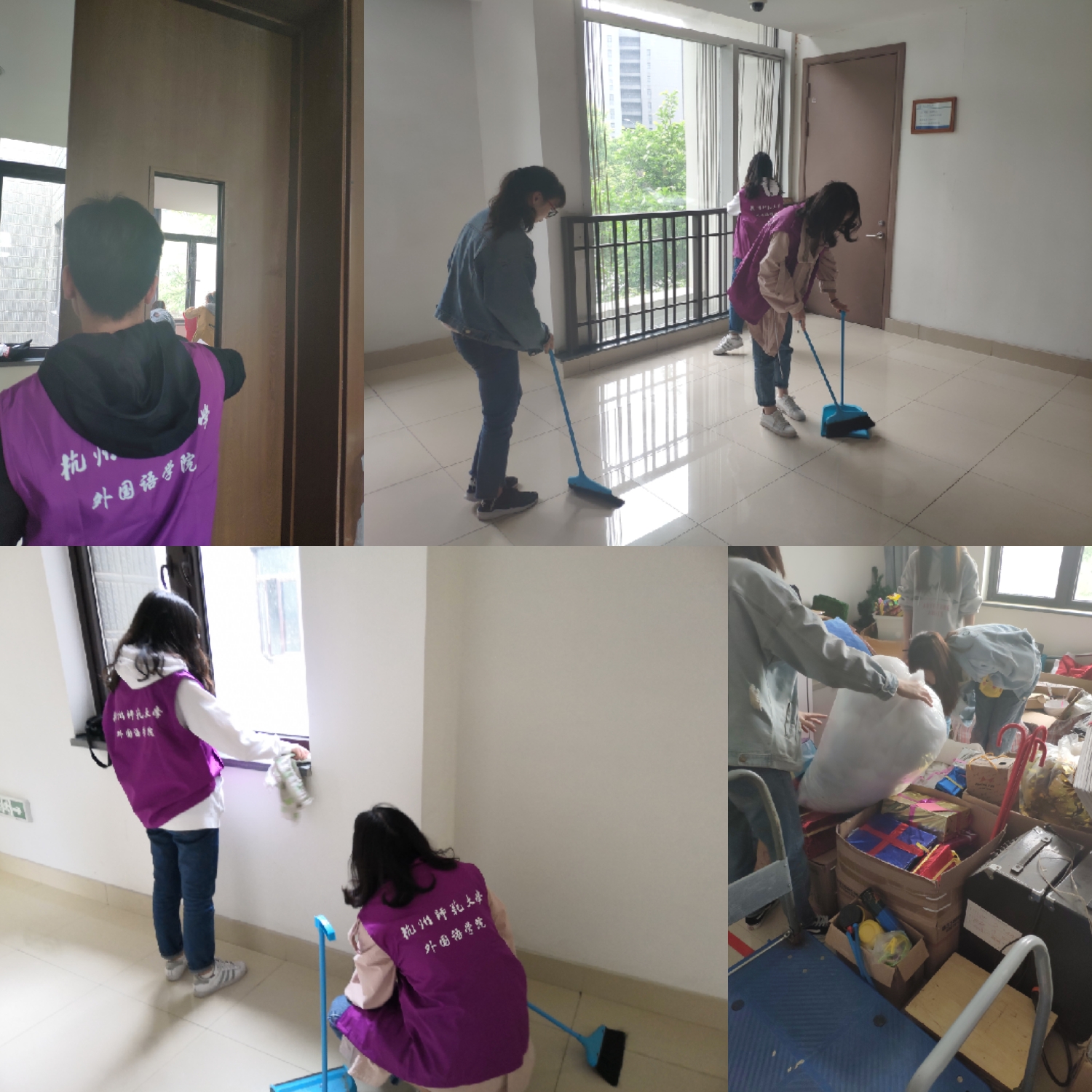本期培训班社会实践分为两项内容。第一个社会实践主题是“规范公共外语标识 优化校园语言环境”。为提升杭州城市国际化水平,优化城市语言环境,提高城市精细化管理水平,规范全市公共外语标识译写,根据市政府和学校公管处的统一部署,全体学员发挥专业优势,积极参与仓前校区公共外语标识问题排查整改工作,累计排摸仓前校区公共场所外语标识599处,查找出问题标识49处。在实践过程中,学员们不仅将专业知识学以致用,积极投身于美丽校园建设的劳动教育之中,更重要的是增强了公共服务意识,提高了为人民服务的宗旨意识与奉献精神。第二个社会实践主题是“校园卫生 从我做起”。为了积极响应爱国卫生月和劳动教育的号召,学员们分为5个小组,自带清洁工具来到恕园教学区,对公共教学区域进行卫生大扫除。通过整理杂物室、擦拭窗台、摆放桌椅等,大家齐心协力,干得热火朝天,使得教学楼一尘不染、焕然一新,充分展现了学员们不怕脏、不怕累、劳动最光荣的精神风貌。