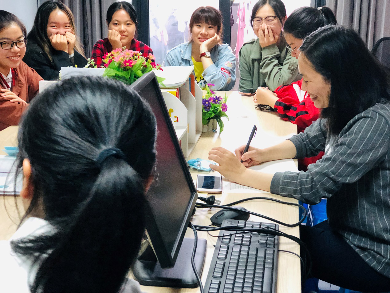 为打破紧张且又略显尴尬的气氛,张老师先打开了话匣子,介绍了自己的个人情况。张老师说,选择“老师”这个职业的初衷是为了图一份安逸,她2010年入职我校,工作一段时间后觉得自己还需要再继续深造,于是又在美国进修了五年的教育学,之后再度回到校园。接着,张老师让在场的同学们依次回答三个问题:你的名字是什么?你选择英语专业的理由是什么?未来想做什么?大家的回答不尽相同,张老师根据这些回答,结合个人经历给出了一些自己的建议: