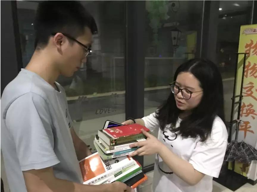 第一次活动后,为了方便毕业生们搬运书籍,第二和第三次书籍捐赠则直接在寝室楼的大厅进行。在这两次活动中,有的同学捧着一摞近半米高的书,交到了工作人员的手中;还有的同学甚至用箱子打包好自己的书籍与祝福,一起捐赠给了自己的母校……在晚上的活动结束后,工作人员也欣慰地发现,来自毕业同学们的书册堆满了大厅的玻璃桌。