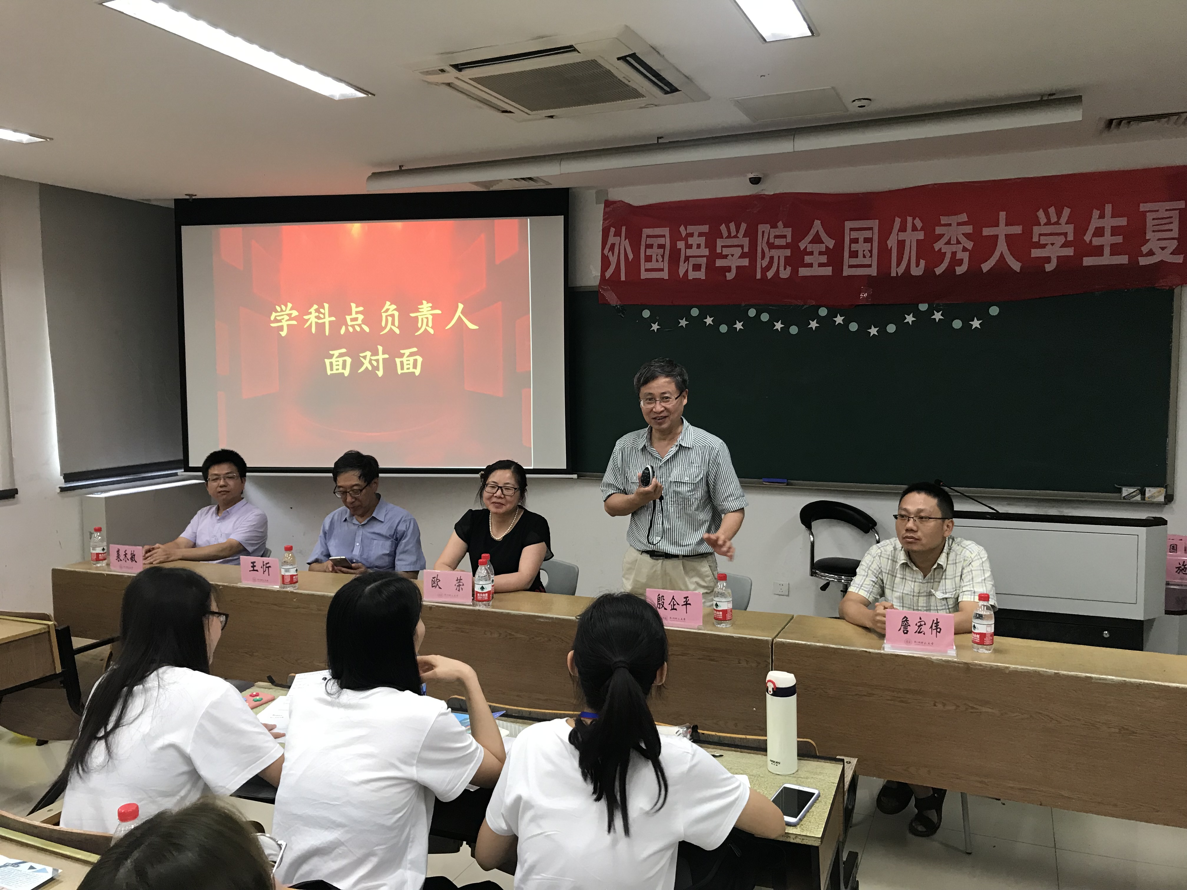 夏令营在永乐视频 任顺元书记的致辞中开营,他对参加夏令营的营员表示了热烈的欢迎,不仅介绍了永乐视频 的学科建设和师资队伍情况,还用马云学长的奋斗经历鼓励每一位营员树立坚定的人生理想。在接下来的四天时间内,夏令营安排了对话学科点负责人活动,永乐视频 欧荣教授、施旭教授、殷企平教授、王忻教授、詹宏伟教授、裘禾敏教授、朱越峰副教授与营员进行了深入的对话和交流,使青年学子更加了解永乐视频 各学科的培养特色。施旭教授、李颖教授、陈茂林教授、谢萍教授、陈静副教授五位老师,针对学科特色和教学经验为营员精心准备了讲座。在幽默、丰富、有趣的交流中,营员对文学、语言学、翻译、学科英语和话语与传播的专业学习充满了兴趣。同时,研究生办公室的钟振国老师为营员详细介绍了永乐视频 的研究生教育、历年招生及各学科的培养特点等情况。在对话学姐、学长的活动中,宋姝婷、余朵朵、陈丽敏、姚舜学姐以及来吉祥、孙磊、王子茂学长为营员介绍了考研备考和研究生的学习、生活以及就业前景等内容,使营员更加明晰自己的考研目标和人生规划。此外,研究生辅导员林祯昊老师介绍了永乐视频 的奖助学金和就业等情况。
