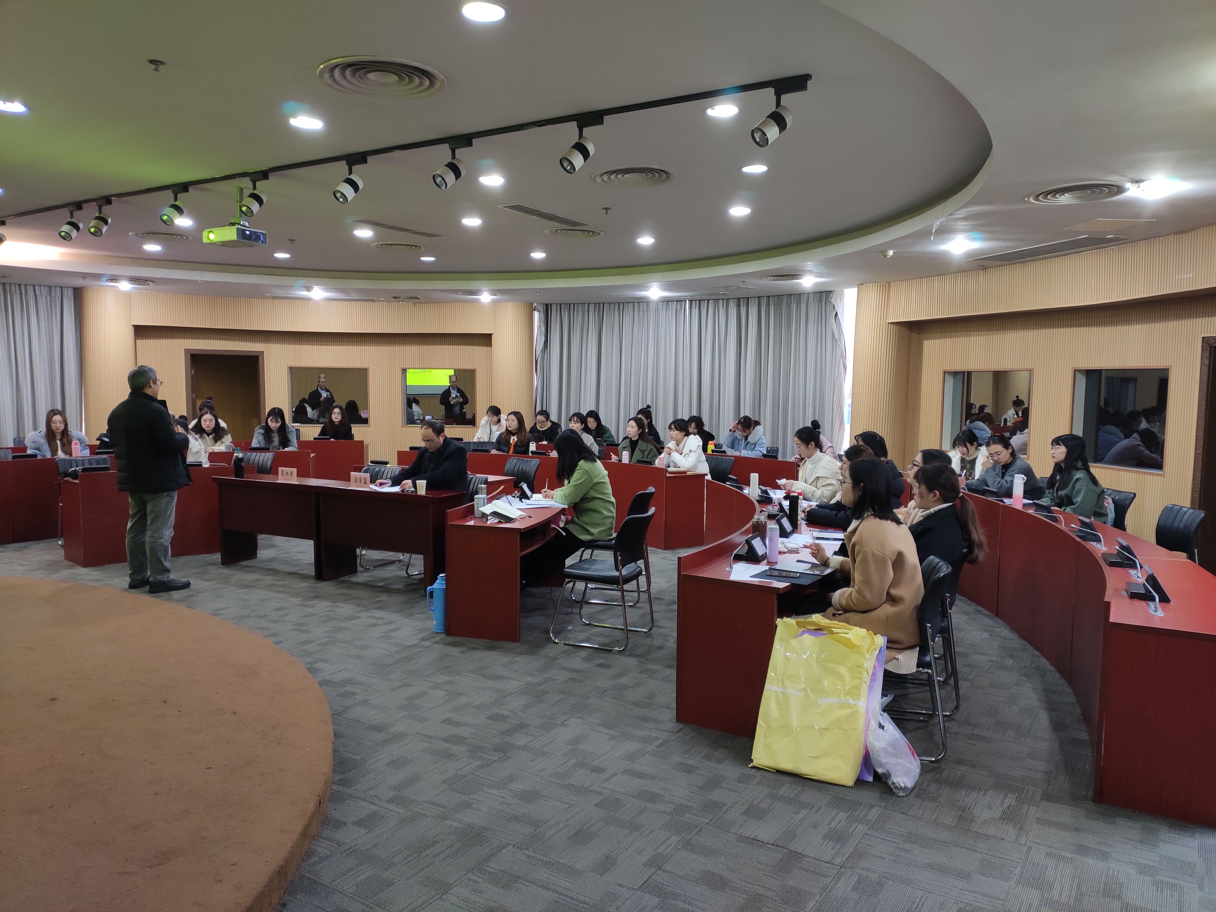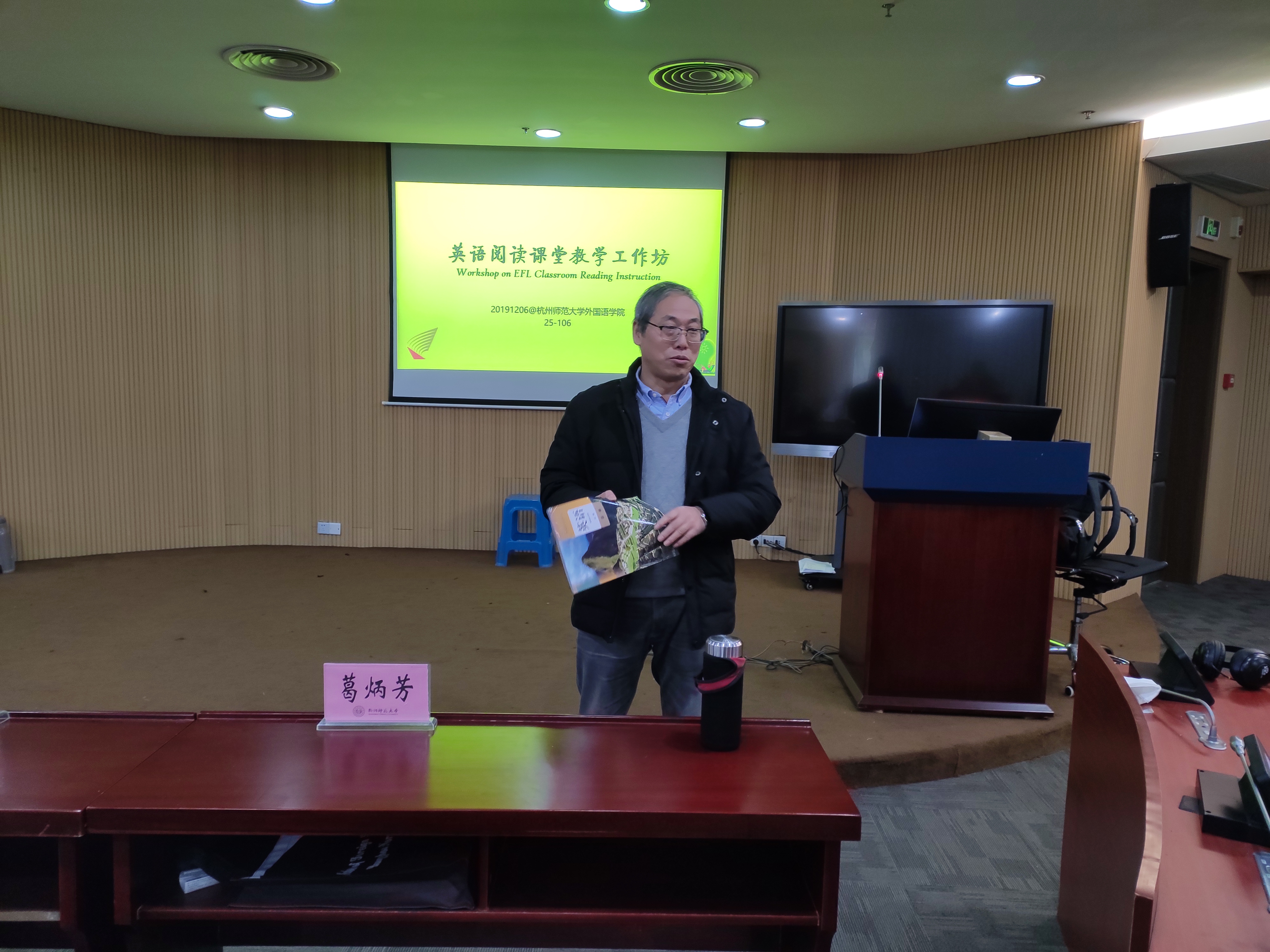 2019年12月6日上午,在恕园25-106会议室,浙江省教研室英语教研员、特技教师葛炳芳老师应邀在永乐视频 开展“英语阅读课堂教学工作坊”的讲座。汪学磊副院长、李中华老师和全体19级学科英语的研究生参加了讲座。