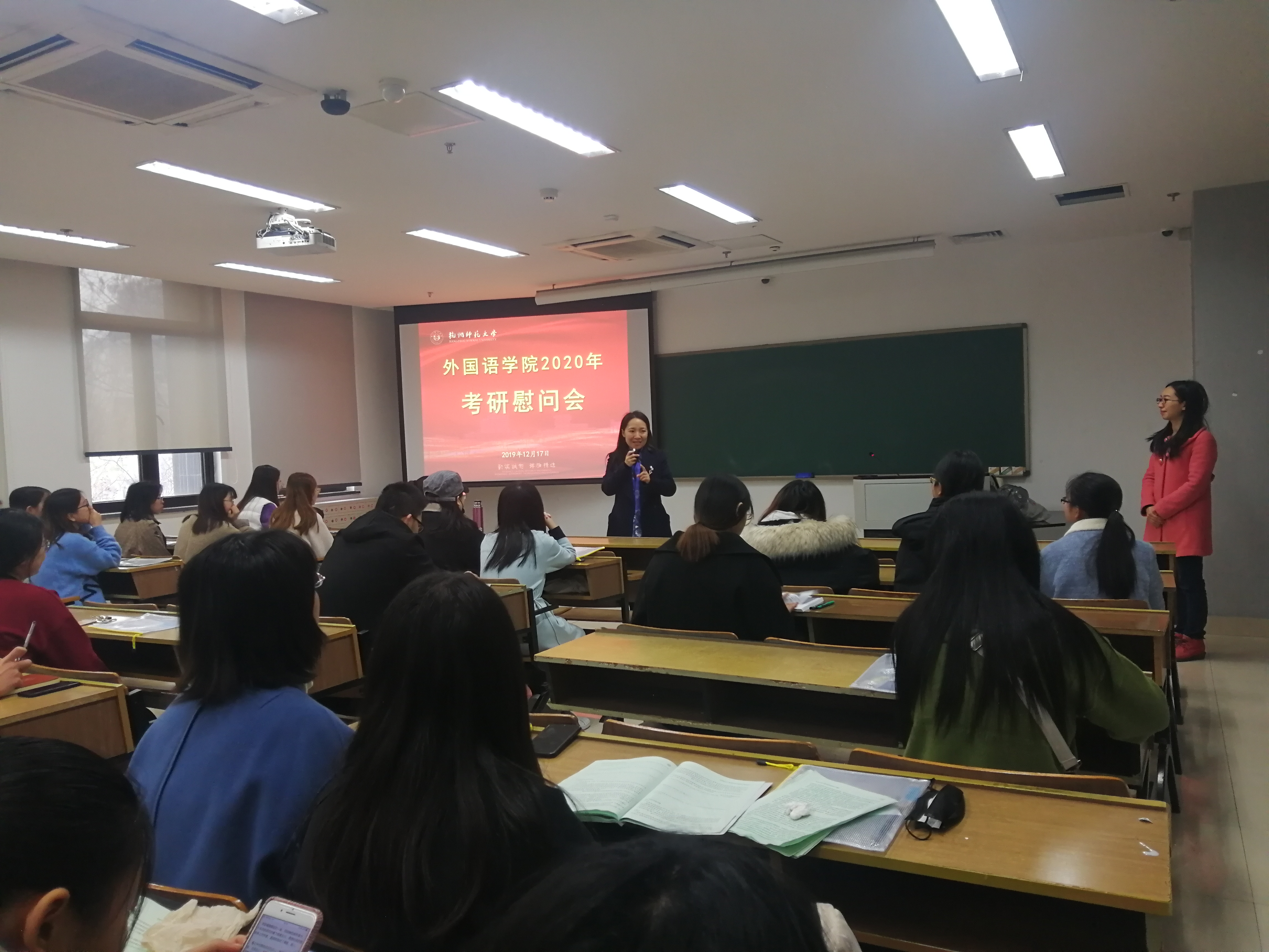 12月17日,永乐视频 在恕园11-209开展2016级学生考研慰问会。永乐视频 党委副书记、纪委书记王倩老师应邀出席,活动由团委书记、2016级年级辅导员陈姗珊老师主持。
