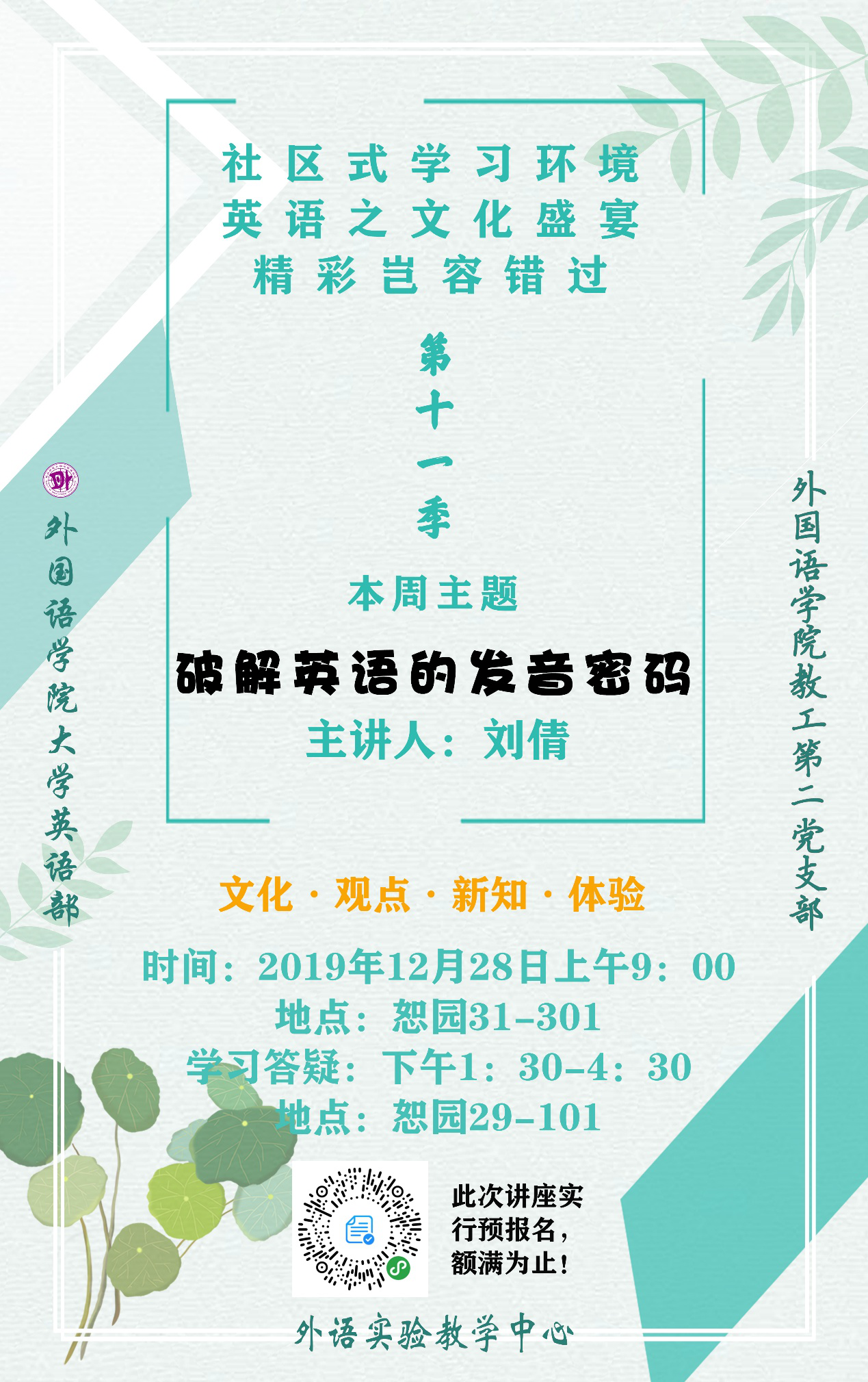 教工第二党支部举办“破解英语的发音密码”周末英语学习讲座