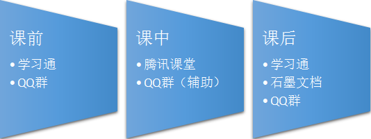 “学习通”是本课程的枢纽平台,主要由基本知识、拓展知识、学习检验、活动区等四大板块组成。教师端还可以了解学生的学习轨迹和各类成绩,能够更加客观、准确的掌握学生的学习情况。学生通过移动终端,可以在“学习通”上查看学习资料、完成作业及测试、留言互动等。“腾讯课堂”是直播授课平台,教师可以展示课件、视频等多媒体文件,也可以与多名学生实时连线互动,最大程度保障了课程的互动性。“石墨文档”作为在线作业本,可以在线批改学生作业。本课程利用不同颜色区分批改次数,做到了跟踪批改,使学生们最终准确掌握正确的语言表达。