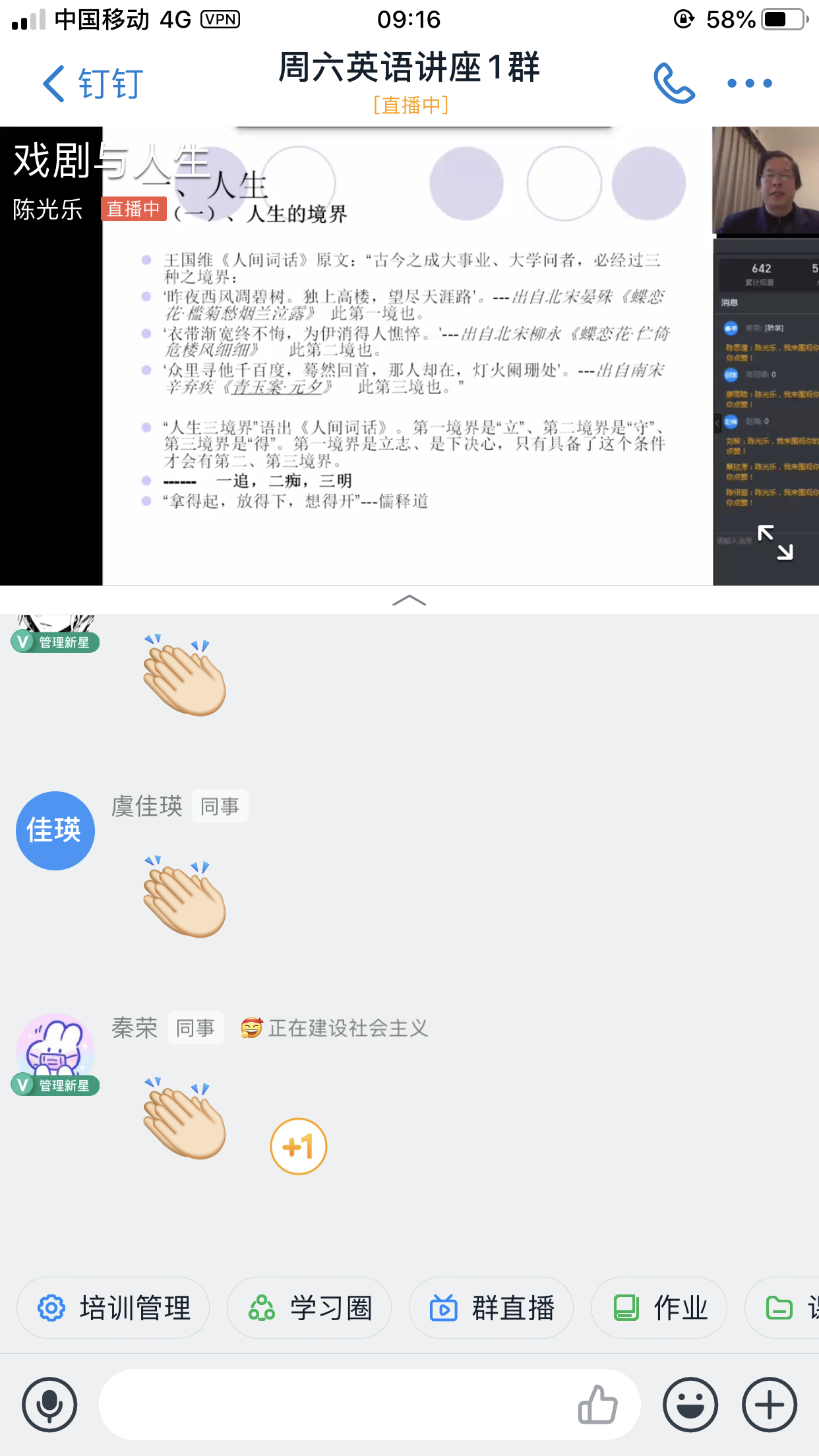 随着周六讲座在学生中的口口相传,加入讲座群的学生人数已达到1753人,由于部分学生时间冲突,本次讲座实际参与人数为1363位,继续研修1000+的人气,学生来源主要为2019级非英语专业的学生,同时,也吸引了部分英语专业及浙江永乐视频 的学生来参加学习,观看直播的总人次达到2000多次。