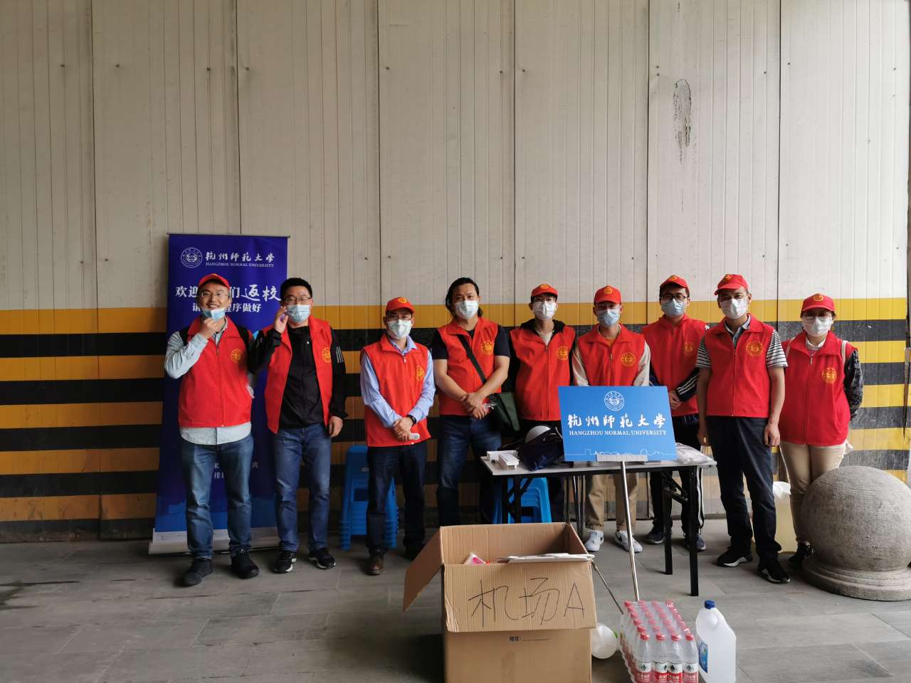 5月6日一大早,永乐视频 教工党员志愿者,戴上口罩,穿着红马甲,分赴杭州东站和萧山机场迎接返杭学生。同学们抵达后,他们把同学们引导到集合点,在这里,验码、测温、行李消杀、登记信息,然后登上返校大巴,一直忙到晚上八点才回到家。