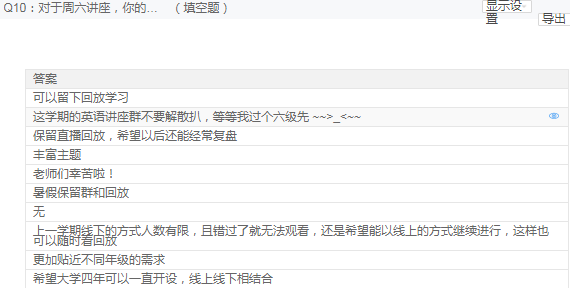 至此,大外部的第十二季周末英语学习讲座圆满落下了帷幕。讲座结束后的问卷调查显示,全校有理学院、医学院、外语学院、体育健康学院等17个学院的学生参与了周末英语讲座的学习,其中有57.21%的同学全程参与了10次讲座。同学们纷纷表示:周六英语学习讲座干货满满,帮助他们习得了很多考试技能、学会了英文写作、阅读等很多学习方法、增加了跨文化意识、拓宽了国际视野、明白了如何正确规划大学生活等。总之,同学们对这学期的周六英语学习讲座非常满意,即使大二将不再有大学英语课,92.76%的同学依然表示会继续参加周六讲座学习,甚至希望周六学习讲座能四年不断线。