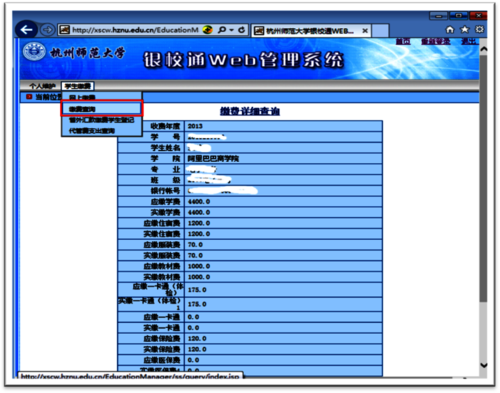 登录//xscw.yonglesp.com后,点击菜单栏中“学生缴费”—“缴费查询”,选择查询学年可以查询每年的应缴和已缴明细。负数为应退费。