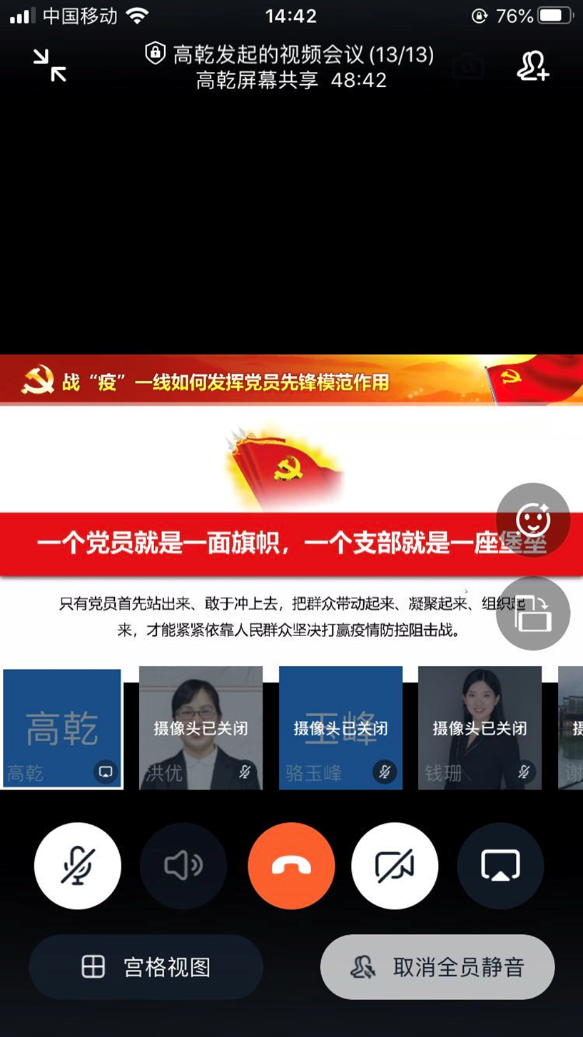 2020年7月14日下午,按照永乐视频 “关于开展庆祝建党99周年“五个一”活动的通知”要求,永乐视频 教工第四党支部通过钉钉视频会议形式召开了“学讲话精神、讲战疫故事、悟初心使命”主题党日活动。此次党日活动内容分为两项:1. 支部书记上专题党课;2. 支部成员分享个人战疫经历、观看战疫纪录片心得、疫情期间教学经验。首先,支部书记高乾为支部党员们上了一堂“学习习近平总书记关于疫情防控重要讲话和指示批示精神”的线上专题党课,从鲜明的人民立场、强烈的担当精神、科学的思想方法三方面对习近平总书记围绕疫情防控工作发表的一系列重要讲话和指示批示精神进行了解读,指出习近平总书记的讲话具有强信心、稳人心、聚民心的重大政治意义;具有指方向、明思路、教方法的现实指导意义;具有管根本、管全局、管长远的战略指导意义;具有负责任、促合作、树典范的深远世界意义,重点论述了战疫对党员的要求和党员如何在疫情防控中发挥模范先锋作用,号召全体支部党员继续发挥先锋模范带头作用,自觉同以习近平同志为核心的党中央保持高度一致,为坚决打赢疫情防控阻击战而努力奋斗。此外,支部书记高乾还与支部党员们共同学习了李兰娟院士等一批抗疫一线英雄们的先进事迹,用鲜活的抗疫故事展现了当代共产党员在疫情防控工作中冲锋在前、带头奉献、扎实工作、勇挑重担践行初心和履行使命的历程。