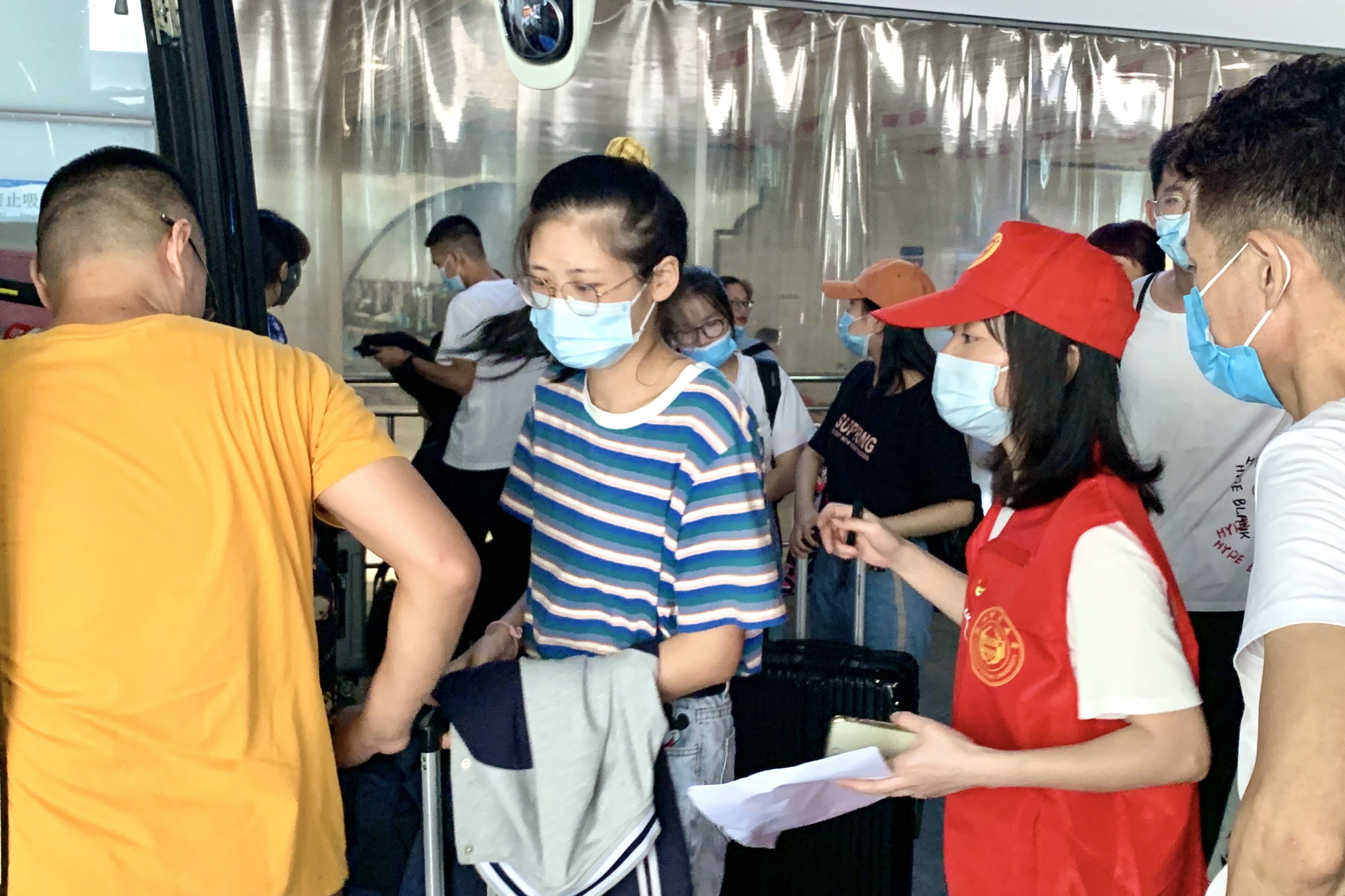 9月15日一大早,永乐视频 教工党员志愿者,戴上口罩,穿着红马甲,分赴杭州城站、杭州东站和萧山机场迎接返杭学生。同学们抵达后,他们把同学们引导到集合点,在这里,验码、测温、行李消杀、登记信息,然后登上返校大巴,一直忙到晚上八点才回到家。今年因为疫情防控的原因,所有新生家长都不得送新生进校,志愿者们也耐心的向家长们解释,家长们也都表示理解。