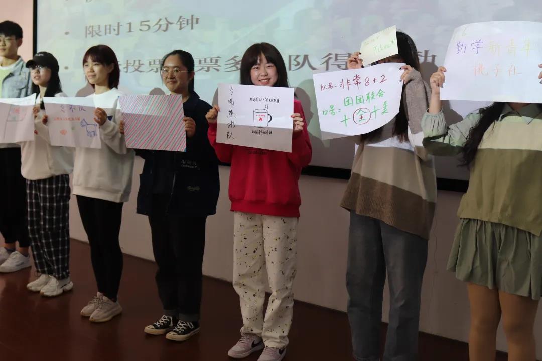 茹姿韵老师以一场妙趣横生的手指操开启了“破冰”之旅。她将所有人随机组成新的队伍,并通过 “我是谁”、“捉虫子”等破冰游戏,消除大家的陌生感,拉近彼此之间的距离。而每个游戏的背后又深藏意味。老师指出,平时的工作就像是游戏闯关,学生需要从中要找诀窍、抓关键,在上传下达时做到条理清晰且有逻辑。最后的队名、队旗设计环节,不仅激发了学生们的创造力、想象力,还促进了团队之间的凝聚力。