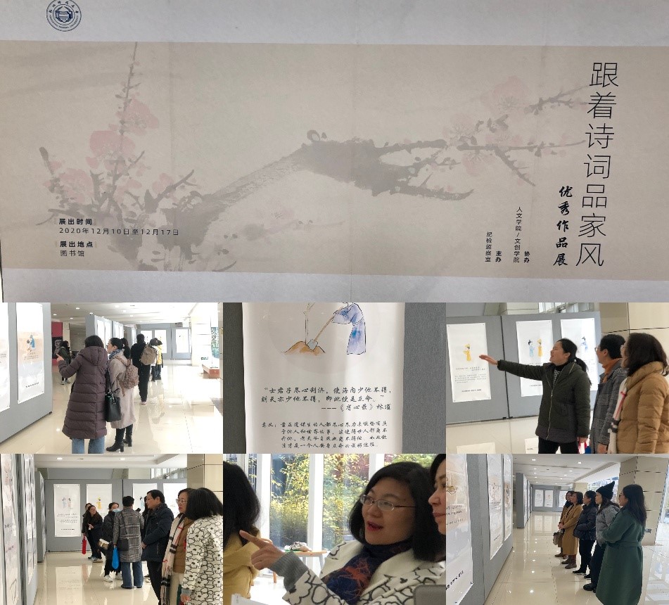 此次展品通过软笔书法、硬笔书法和海报作品生动再现了名人家风家训,正如古人所言,“士君子尽心利济,使海内少他不得,则天亦少他不得,即此便是立命。”我们每个人安身立命的最佳途径是——尽心尽力去做一些有益于他人和世界的事。除2名党员病假,2名党员外出攻读博士学位外,1名党员事假,支部其余22名党员均参加了此次参观活动。全体参与此次活动的党员同志仔细观摩学习后,纷纷表示受益匪浅,并表达了传承中华传统优秀家风文化,以英文为媒介讲好中国的故事良好愿望;心中暗暗下定决心,立足本职争做“文化摆渡人”。