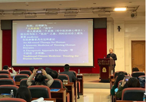 林教授的演讲题目为《从中医翻译大赛探中医翻译硕士培养》,主要从中医翻译大赛的启示,从基本概念理解、比较分析能力、总体整合意识等方面,归纳翻译大赛中揭示的弱项、短板,作为研究生课程需重点弥补、充实的基础;中医翻译硕士研习特色,主要体现在与医学英语教学的学习内容不同、与一般翻译硕士教学内容的不同及与一般医学和中医翻译教学内容的不同等方面;以赛促学,重点充实,从特殊学科性质的认识、跨学科的动态视野和复杂语境中的实战能力等方面,探讨中医翻译硕士课程的有效设置和培养途径。