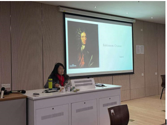 在讲座正式开始前,陈海容老师指出阅读经典原著对英语专业学生提升语言能力和专业素养的重要性。随后陈老师用几个生动的例子让同学们了解文学研究的方法和路径,指出同样的一部作品用不同的理论和视点切入会呈现出不同的“风景”。在对作者生平和小说背景作了简单介绍之后,陈海容老师还点明了《鲁滨逊漂流记》在英国小说发展史上的重要意义。在带领同学们进行文本细读的过程中,陈老师提醒同学们注意凝结在“种植园”、“食人族”“主人”等词汇背后的社会历史语境和权力关系。任何一部伟大的文学作品的主题都绝不会是单一的,为了让同学们对文学研究有更加直观的感受,陈老师从小说的“基督教”主题入手带领同学们细读文本,结合具体的小说文本来分析鲁滨逊的精神之旅。接着,陈海容老师又指出意象在理解小说上的重要性,着重分析了金钱、枪和海洋在小说中的象征意义。最后,陈海容老师向同学们展示了现有研究的理论视角,并以物质文化研究作为视角,从物质与价值、物质与宗教、物质与劳动三个方面对小说进行了文本细读和精彩分析。整场讲座精彩纷呈,气氛热烈。