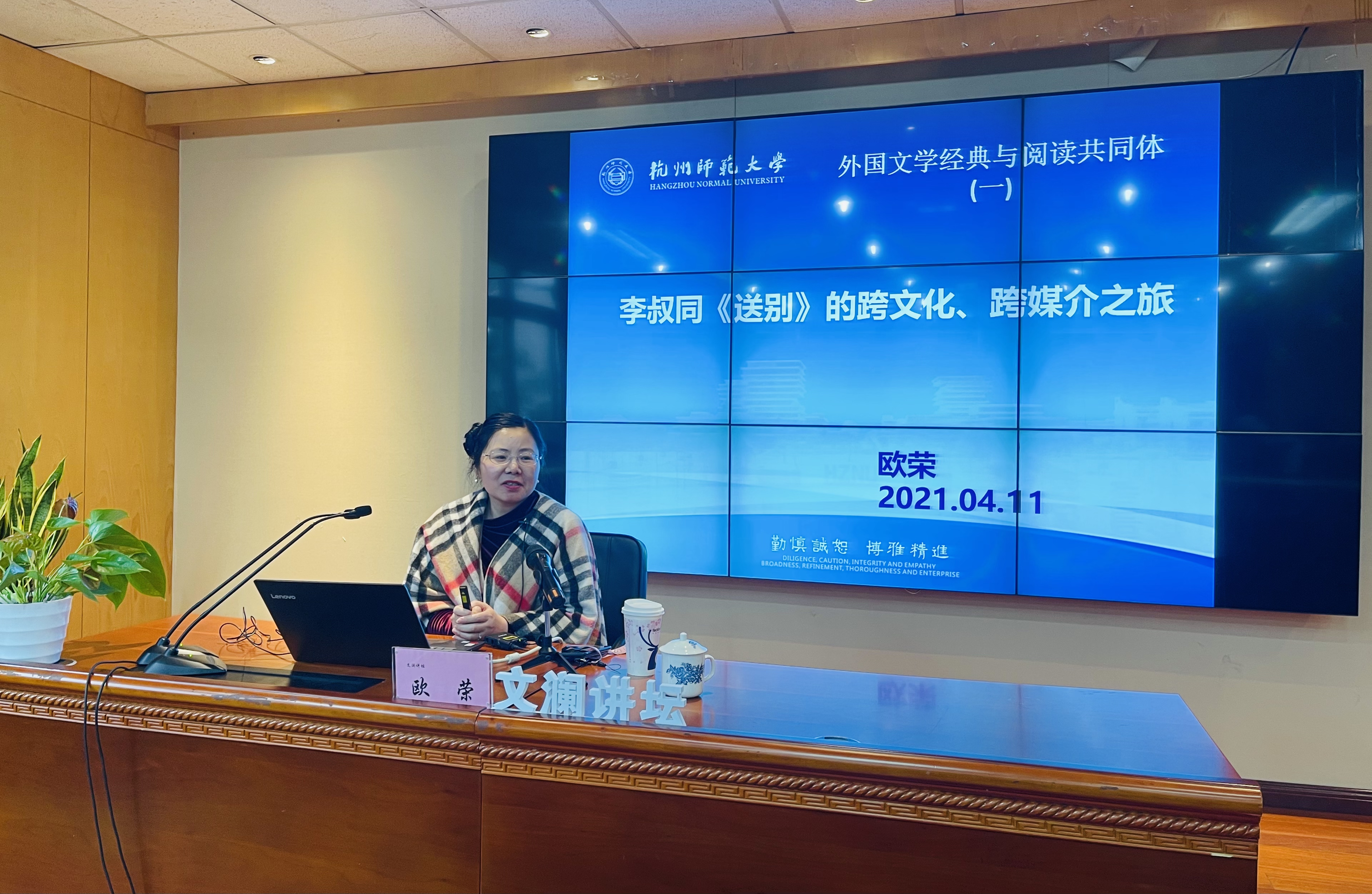 2021年4月11日,永乐视频 欧荣教授代表永乐视频 敦雅书社走进浙江图书馆,开启疫情之后的文澜讲坛第一讲,与新老读者分享读书、研究心得,以及如何在全球化时代通过跨文化、跨媒介的途径促进中外人文交流,构建人类命运共同体。永乐视频 敦雅书社是由浙江省社科联与钱江晚报共同发起“浙里˙悦读”读书会联盟成员之一,目前已经有13家读书会以此为平台,进行全民阅读推广。