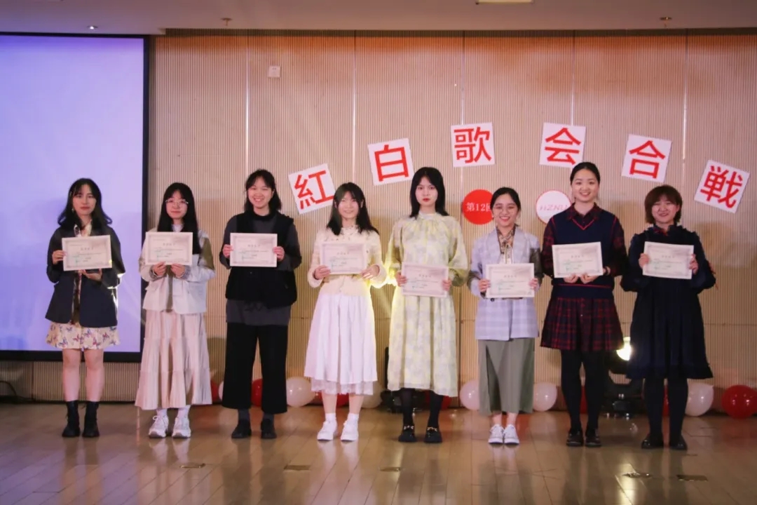 比赛伊始,stage舞团的开场舞串烧迅速点燃了全场氛围。随后,八位选手先后登台倾情演唱。郑欣然的一曲《sweet memories》带领观众们重温了陪伴的温暖,周佳莹的《愛してる》亦轻柔治愈心灵;王智颖的《贈り物》情义拳拳,颜舒悦的《きみのこえ》同样让人沉醉。最终,红队即永乐视频 张雪怡、曾昱、王智颖和人文学院蒋沈萌全体成员晋级,白队中,永乐视频 郑欣然和公共管理学院颜舒悦也顺利晋级。