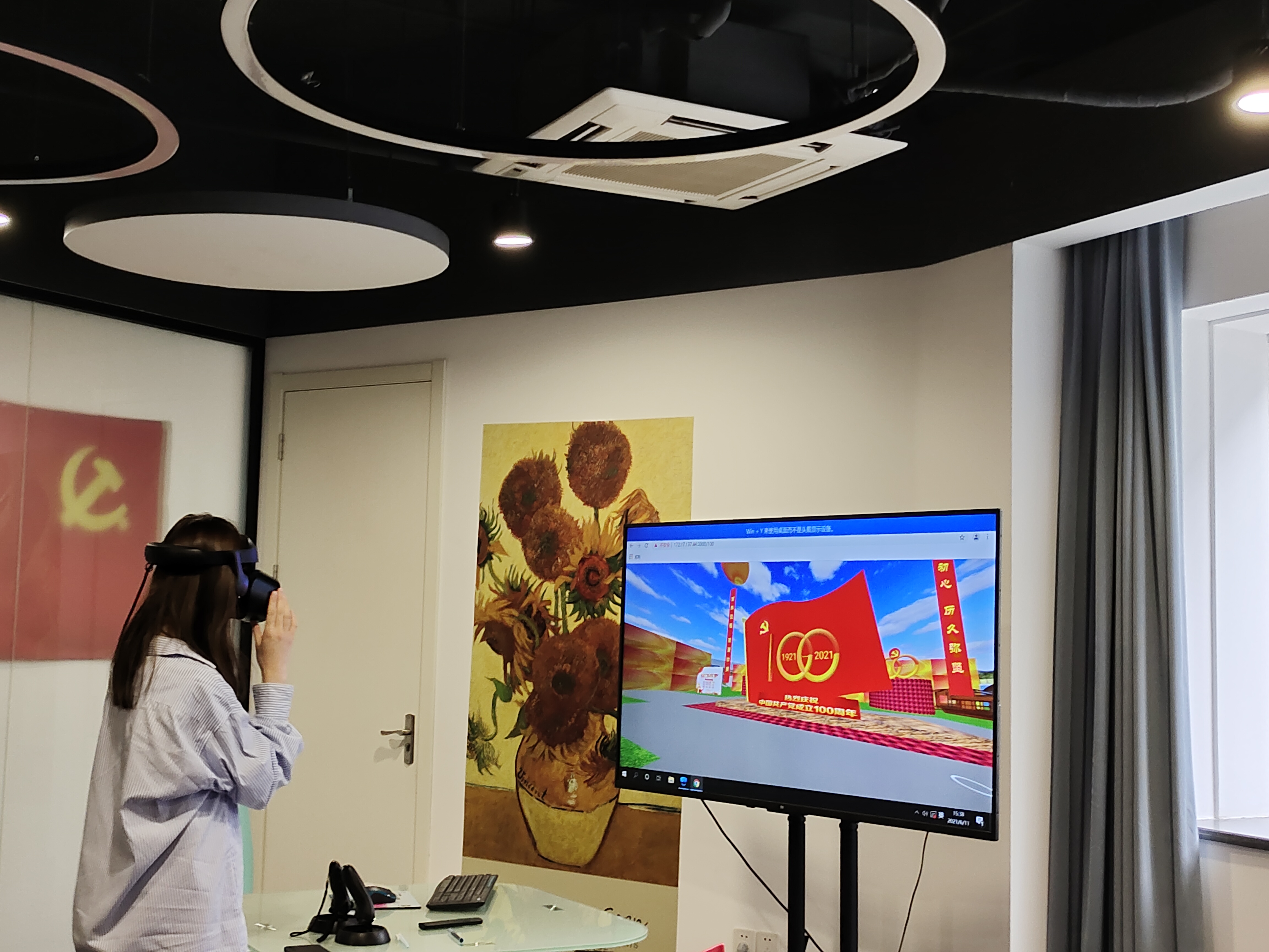 2021年6月11日下午,永乐视频 在恕园19号楼的VR实验室举办了“VR助力党史学习,点亮校园红色文化”主题活动,旨在通过VR技术的辅助,虚实结合,更好地学习党史、坚定理想信念,本次活动由永乐视频 教工第三党支部承办。