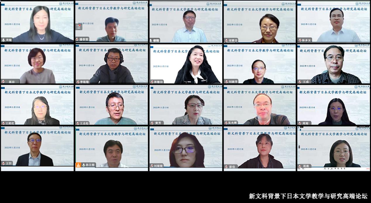 为进一步提升新文科背景下我国日本文学教学与研究水平,促进日语专业的转型和高质量发展,11月13日,永乐视频 主办的“新文科背景下日本文学教学与研究高端论坛”在腾讯会议上顺利召开。来自中国社会科学院、广东外语外贸大学、上海外国语大学、四川外国语大学、中国人民大学、南京师范大学、同济大学、清华大学、南京大学、北京师范大学、厦门大学、北京语言大学、永乐视频 等12名专家、学者应邀参加了本次论坛并作了主旨报告,吸引了来自全国近30所高校的350名师生参加会议。