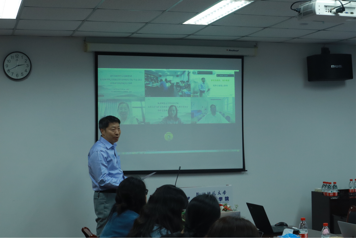 英语语言文学学科点负责人、比文学科点双聘导师陈茂林教授主持了校外专家指导环节。彭青龙教授高度赞扬了杭师大比文学科点的设立及建设成效,认为本学科点成立以来勇于开拓,并取得了许多令人骄傲的成绩。针对学科点建设中存在的问题与不足,彭教授指出,首先,学科点要结合国家、省市以及学校的需求及优势更长远地谋划学科未来的发展方向,注重培养学生的跨学科能力,结合学生需求和社会需求调整研究方向和课程体系;其次,比文专业的学生要注重中英文素养的提升,关注“一带一路”国家的文学文化,拓宽研究视野和就业方向,提前规划,勇于沟通。最后,国际交流要拓宽,比如开设2+1等办学形式或中外师资合作授课等。湖南师范大学的刘白教授从师资团队、方向设置、教研教改、科学研究和人才培养五大方面分享了湖南师范大学比较文学与跨文化学科点建设情况,为本学科点的进一步发展提供了启发和借鉴。