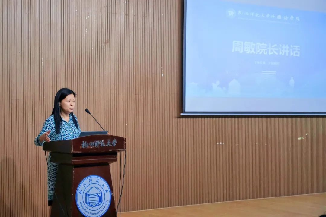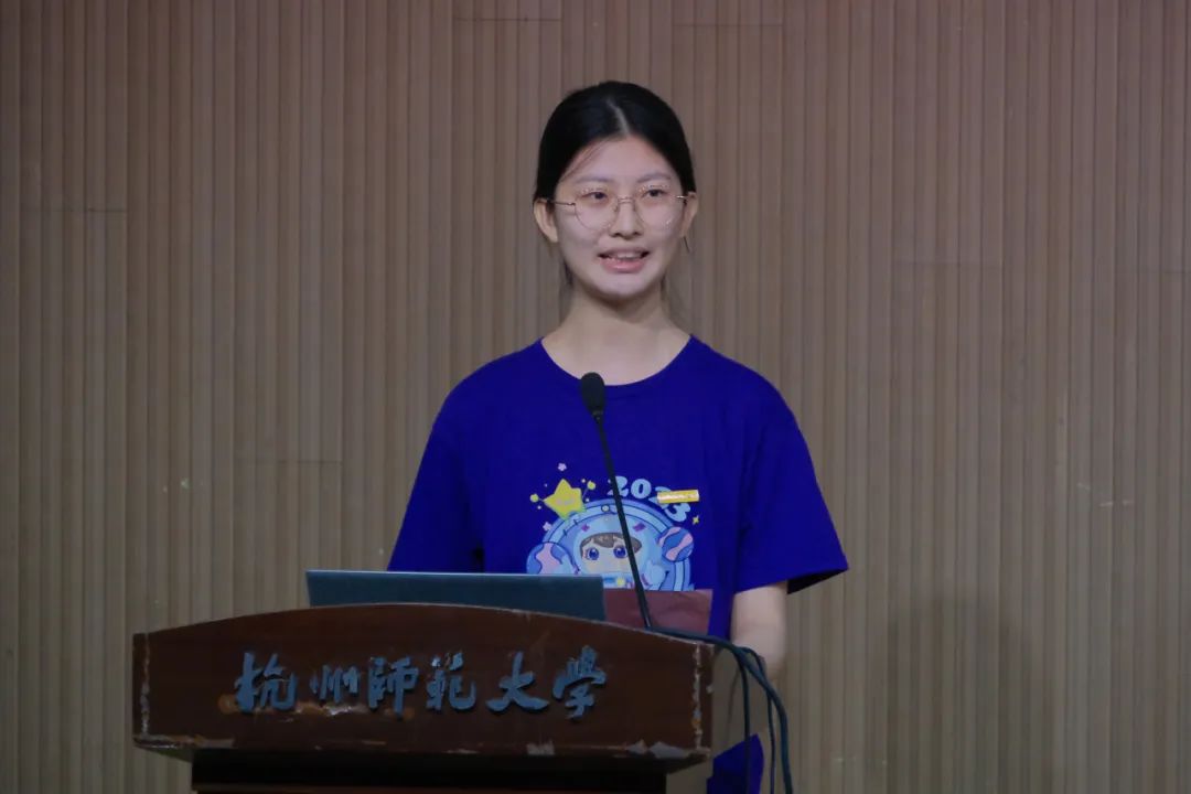 2021级外国语言学及应用语言学专业的董莎莎同学作为老生代表发言。她回顾了过去两年的学习,与新生们热情的分享了自己的学习经验。2023级比较文学专业的温亮同学作为新生代表发言,她表示能够在杭师大学习深感荣幸,她表示将利用学院丰富的资源,向着成为知识创造者的方向前进。