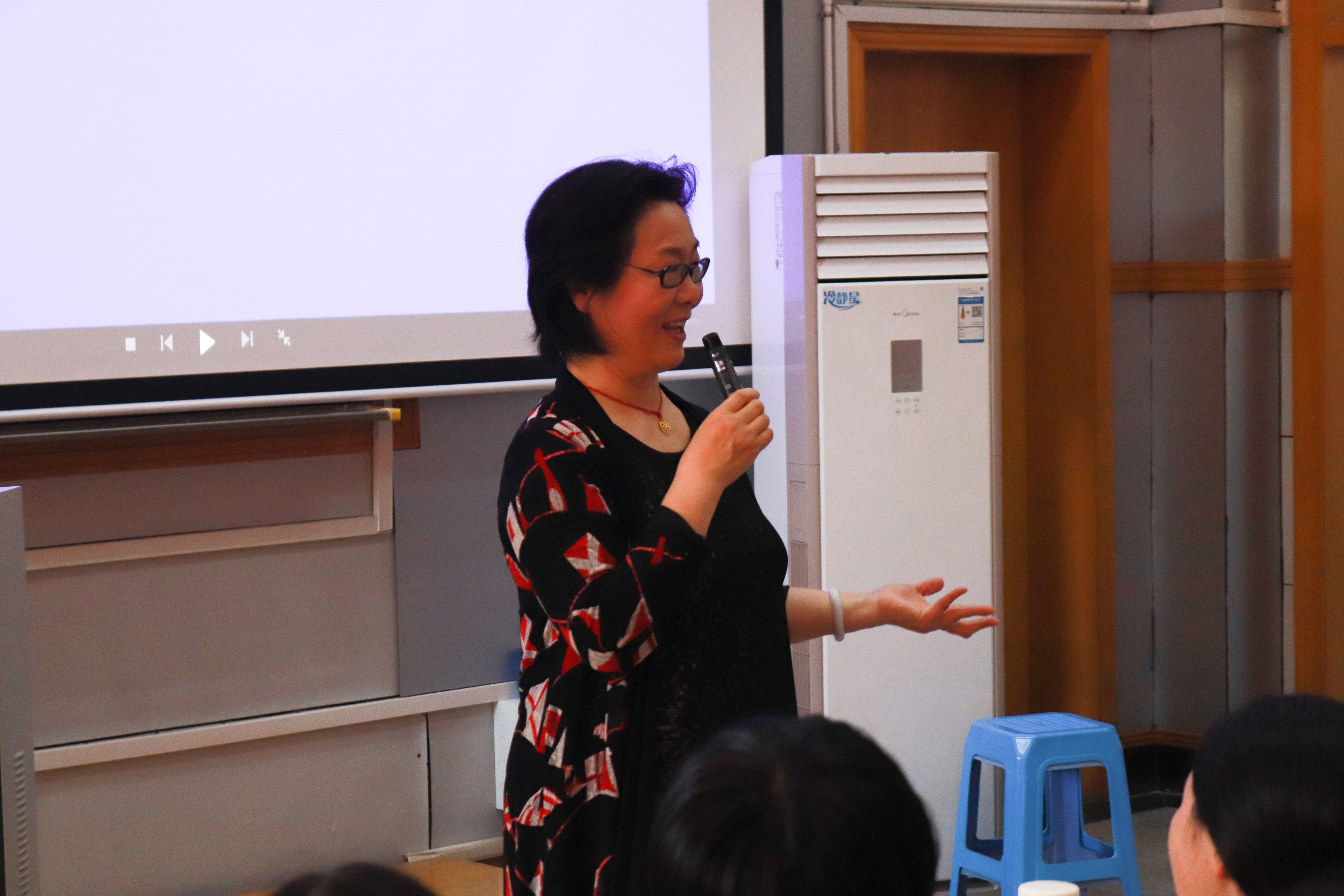 为了更好地分享英语学习经验,张丽华在三步曲的第三步“Advanced”中,用一段获奖感言作为切入点,提到了“听、说、读、写”在英语学习方面的重要性,并给出了正确实施这些方法的关键——active。她指出,学习英语最重要的是一个良好的环境,所以她建议同学们每天都能抽出时间来创造这样的条件。以一段文本为例,张丽华让在场学生简单尝试对阅读内容进行理解和剖析。她认为阅读不应局限于书籍,在生活中常见的广告词、包装盒等等都是学习的媒介。此外,她还向同学们讲述了自己儿子通过看电视剧学习汉语的经历,并提出了边听、边看、边思考的学习方法,数次沉浸式地聆听、观看、练习,会让学习事半功倍。随后,张丽华校友介绍了一种新的教学方法——逆向设计,即先设计目标再设计学习方法,并通过展示自己学生的自制短视频来加深同学们对其的理解。
