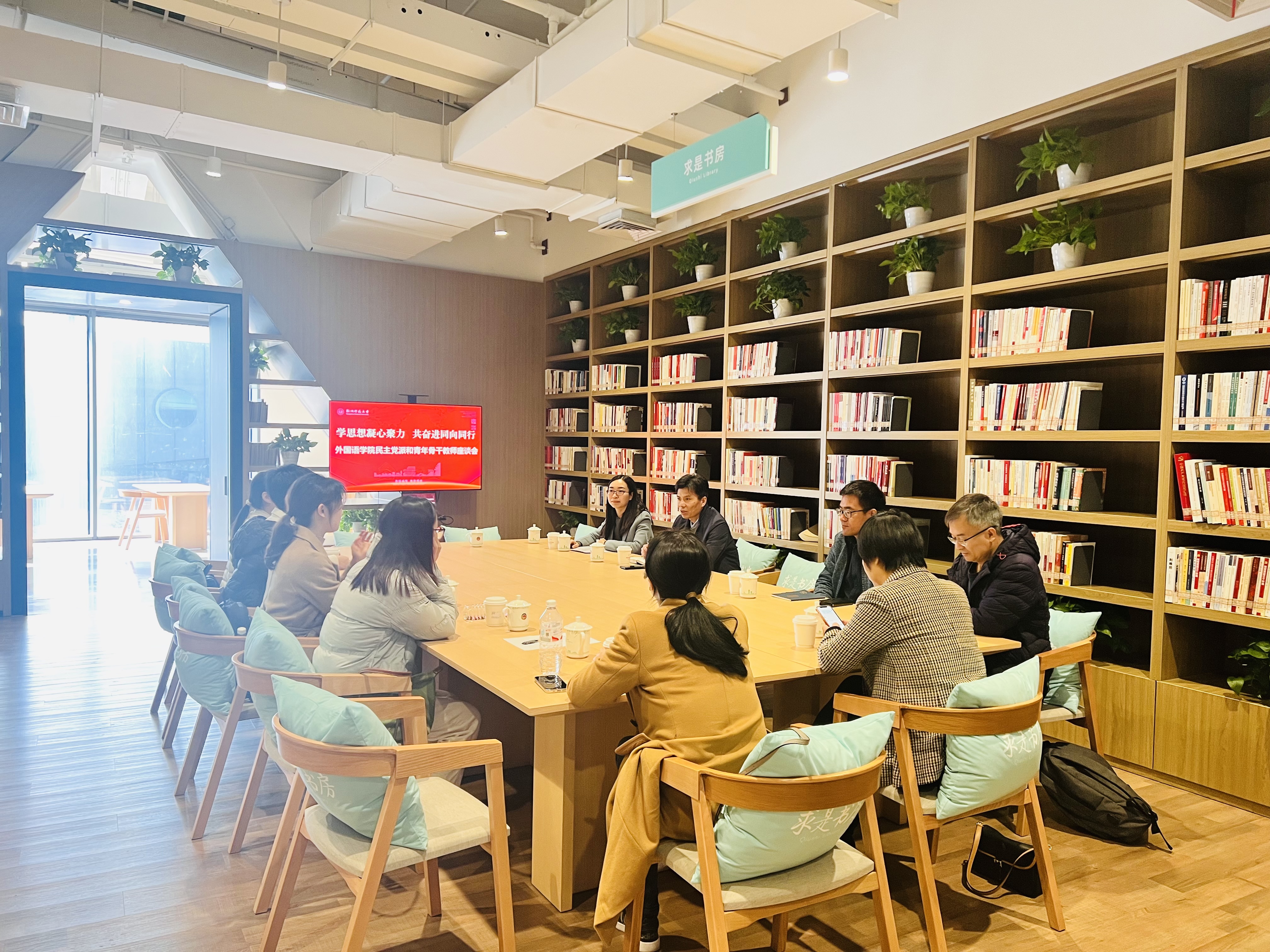 在座谈交流会上,潘春雷指出,我们要深入学习贯彻习近平总书记考察浙江重要讲话精神,持续学好用好“八八战略”,深化对新时代党的创新理论的研究阐释,深入师生开展调查研究,推进教学科研成果转化,弘扬师德师风正能量,在学校争创“双一流”建设高校的征程中展现外院新担当新作为。