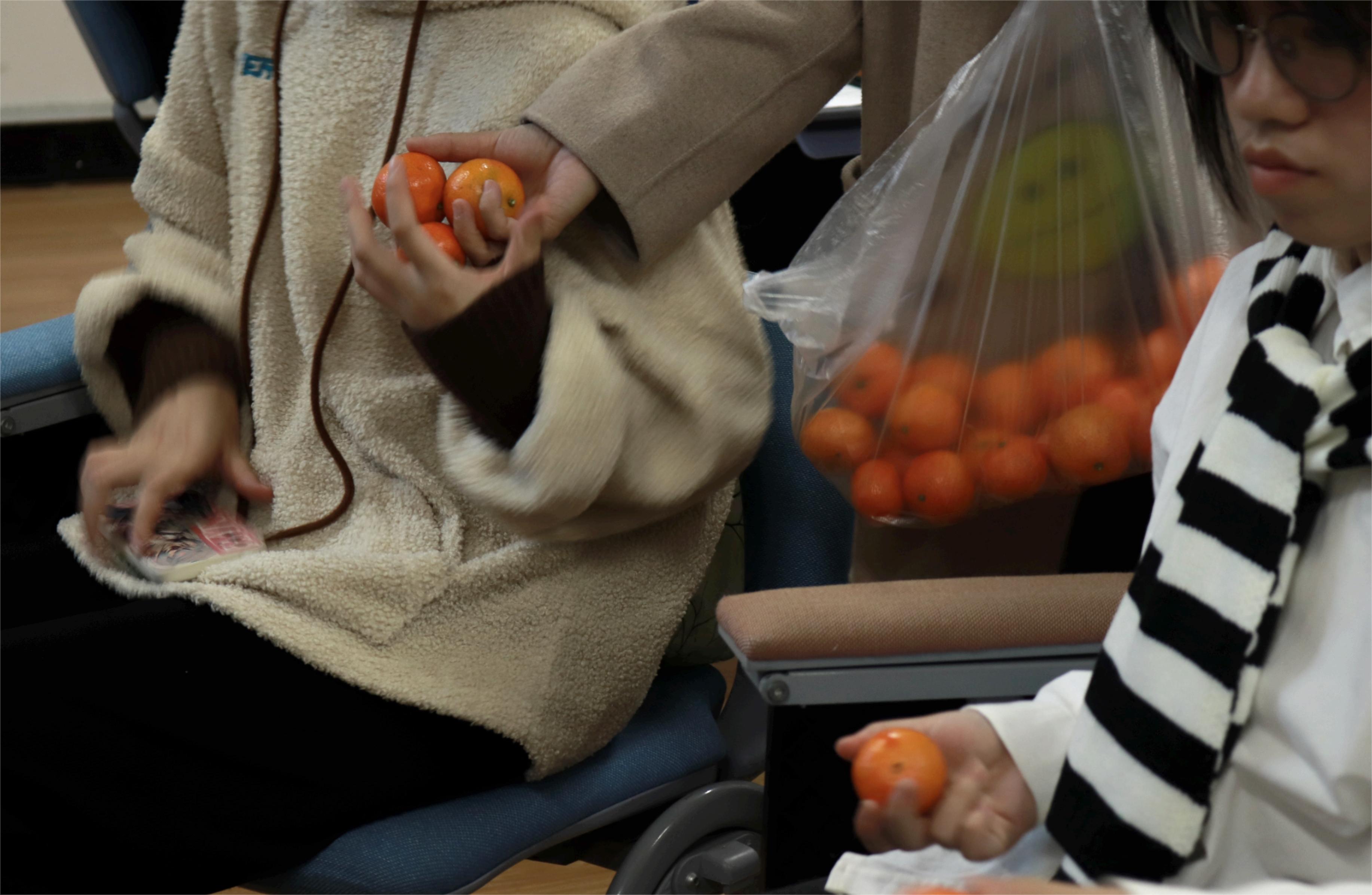 对于同学们提出的正念是否需要特殊的环境的疑惑,周凤琴老师表示,正念并不一定需要安静的环境,其在生活中的应用也是非常丰富的,如正念进食、正念走路、正念排队等等。为了更好增进同学们的理解,她引导大家进行了一次“正念吃橘子”,在这个过程中,大家细腻地感受到了橘子在身体中的变化过程,内心变得平静,压力得到了释放。周凤琴老师以自己为例,告诉我们当一个人习惯了把正念应用到日常生活中,他的情绪就会变得稳定,琐事也会变得美好起来。