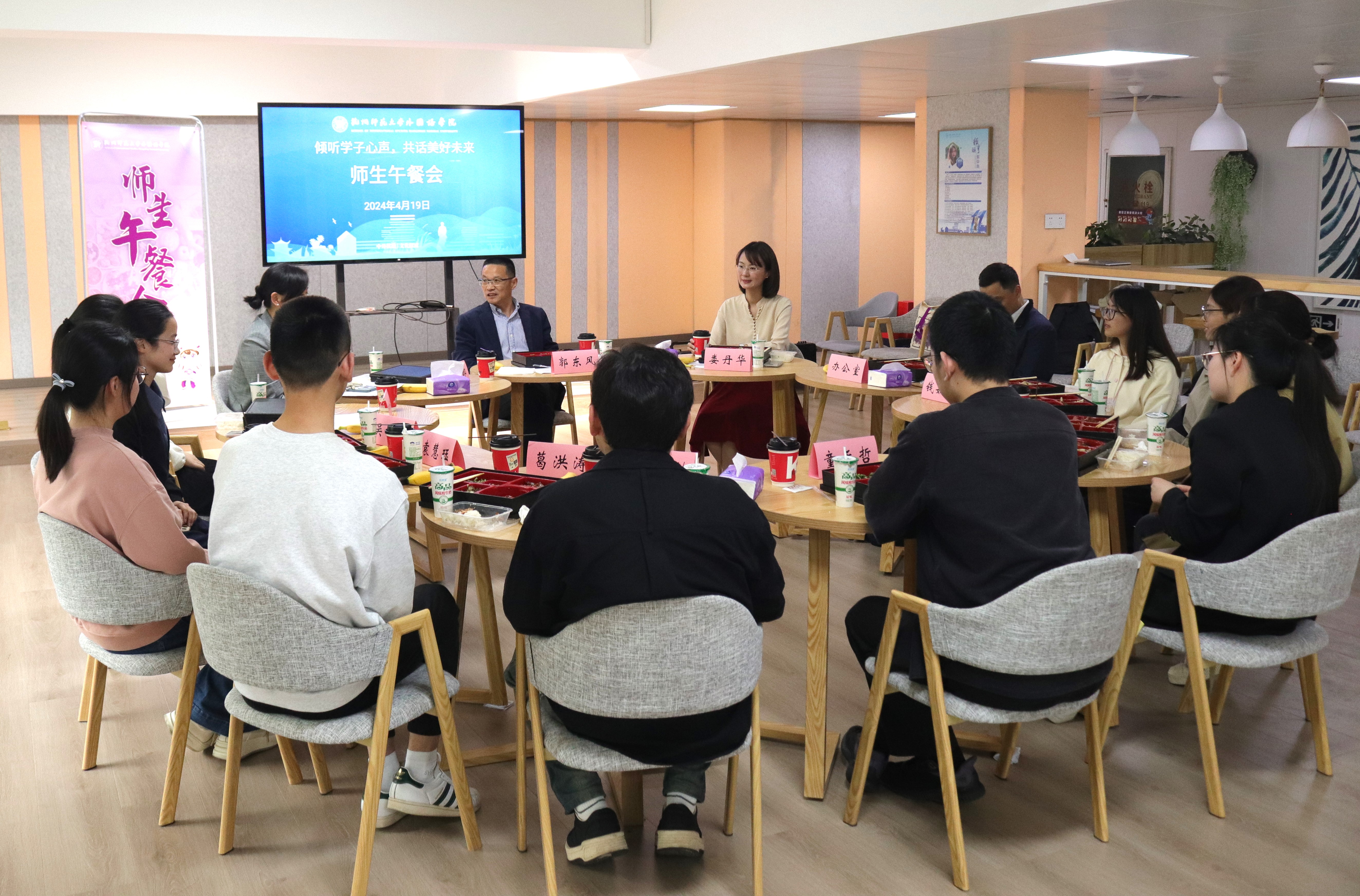 4月19日中午,永乐视频 师生午餐会在下沙校区大学生成长活动中心举行。校党委书记郭东风、校办公室和基础部相关负责人、学院党委副书记娄丹华、辅导员钟心怡与本科生学生代表们共进午餐,畅谈校园生活与个人发展。