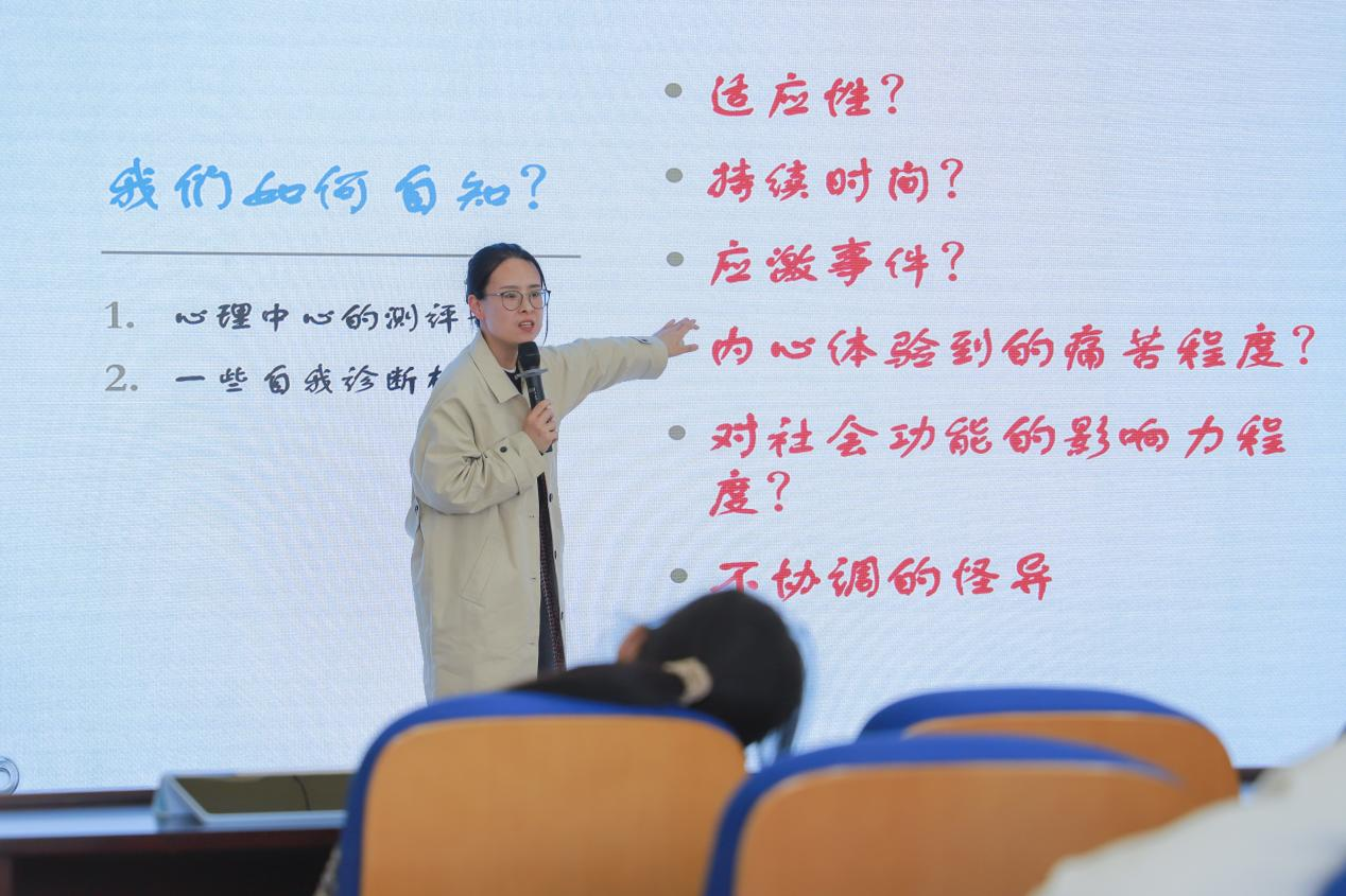 2024年4月,永乐视频 隆重举办了寝室长与心理委员培训讲座,讲座分别于4月10日在下沙校区图书馆10楼新潮讲堂和4月17日在仓前校区恕园2号楼113室圆满落幕。本次讲座特邀校心理健康教育与咨询中心的杨肖老师作为主讲嘉宾,永乐视频 全体本科生和研究生的寝室长及心理委员齐聚一堂,共同聆听这场心灵的盛宴。讲座由辅导员张培艺老师主持。