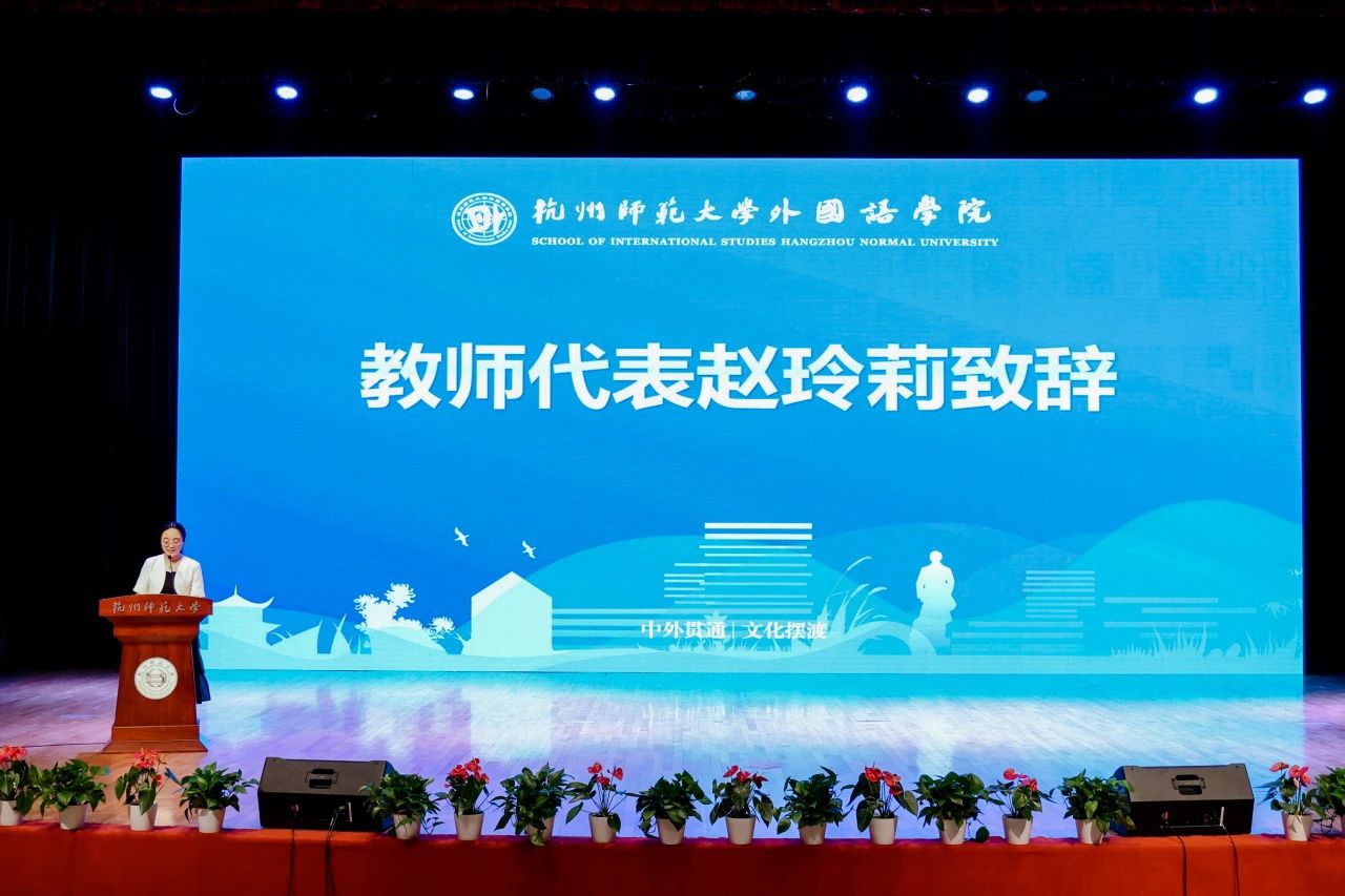 教师代表英语202班班主任、英语系副主任赵玲莉首先向大家表示最衷心的祝贺,祝贺大家顺利完成学业,终得硕果满枝,开启人生新篇章。她回顾了过去大家在校园中的岁月,一帧帧的画面,就像一幅美丽的画卷。赵老师希望大家带着栀子花般的纯洁和坚韧,在未来前行的道路上,低头赶路,仰望星空。追风赶月莫停留,平芜尽处是春山。愿大家历尽千帆,归来仍是少年。