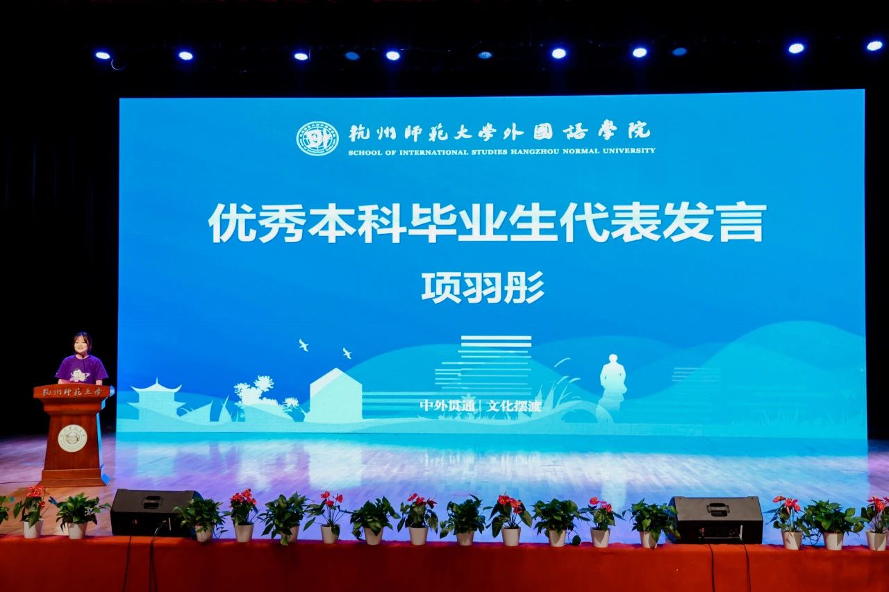 本科生代表英语201班项羽彤和研究生代表21级比较文学与跨文化研究专业的葩丽扎提·阿地里分别进行发言。求学路漫漫,幸得其相伴,他们深情感谢母校的悉心培养与关怀,承诺将铭记师恩,勇敢追梦,在未来的人生旅程中绽放光芒。