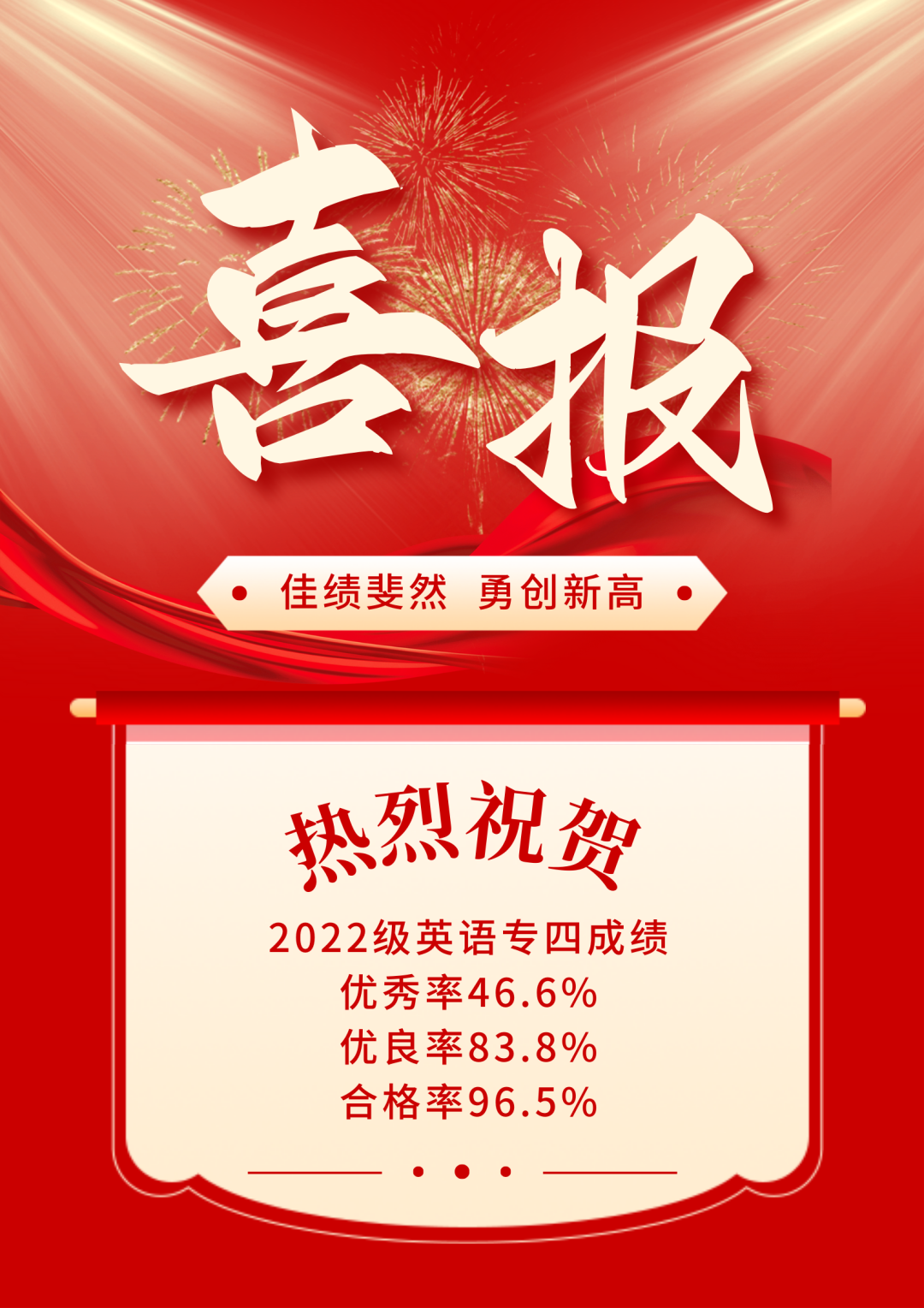 近日,2024年英语专业四级考试(TEM-4)成绩公布,永乐视频 英语专业在此项考试中再度斩获佳绩,优秀率达46.6%,优良率达83.8%,成绩斐然。